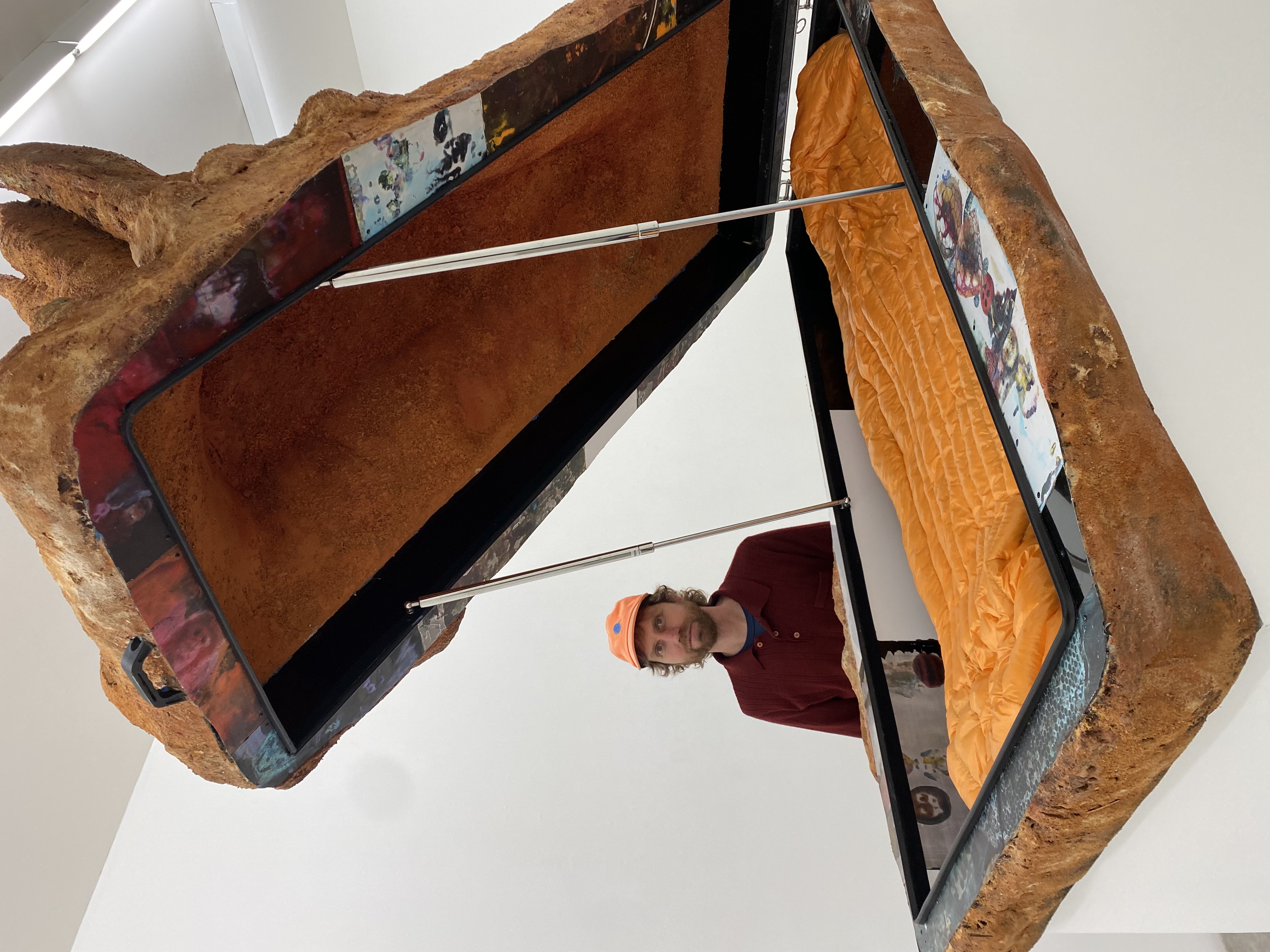 His resin and mixed media sculptures explore socially disengaged, fringe-dweller lifestyles and escapism ideology. They objectify the state between the familiar and the unknown, the permanent and ephemeral, old and new, as if suspended in a moment in time, at the tipping point before natural beauty succumbs to decay. His practice uses the three core foundations of molecular gastronomy, a sub-discipline of food science, as a structure to reinvent the function of materials, socially disengaging a material from its place and relocating it to the outskirts.