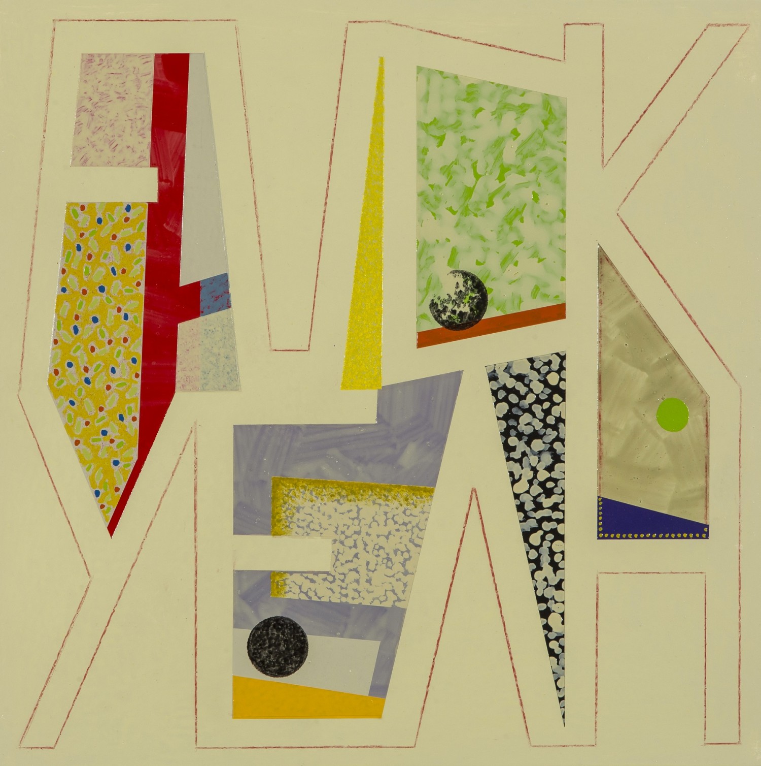 enamel paint, chinagraph pencil, plywood