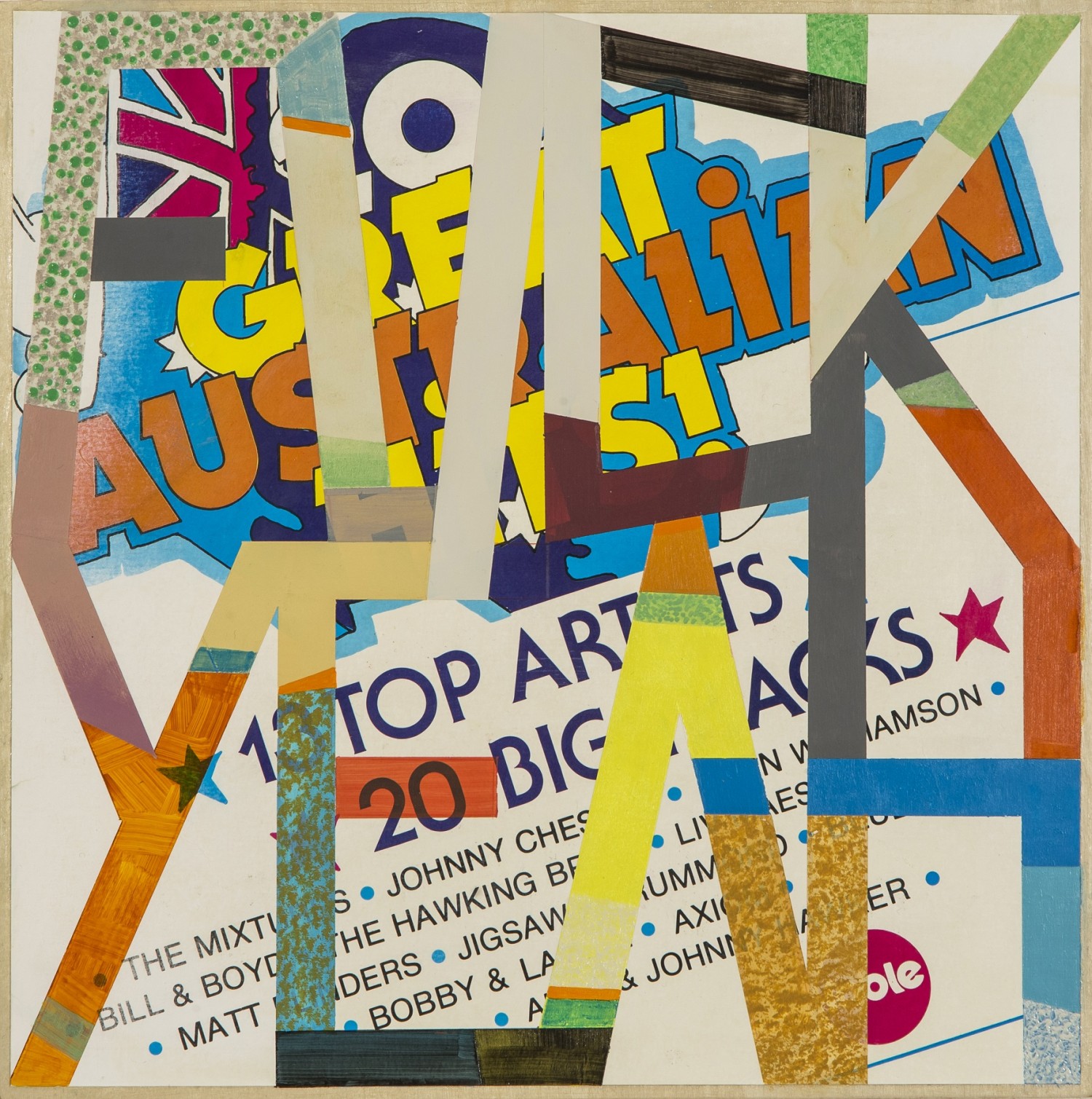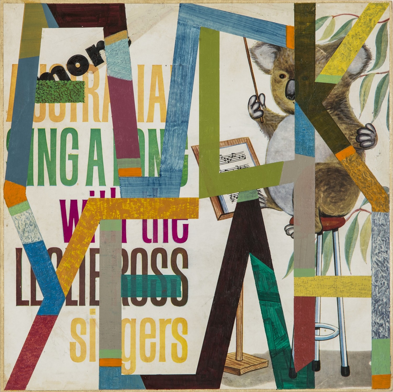 acrylic paint, record cover, plywood