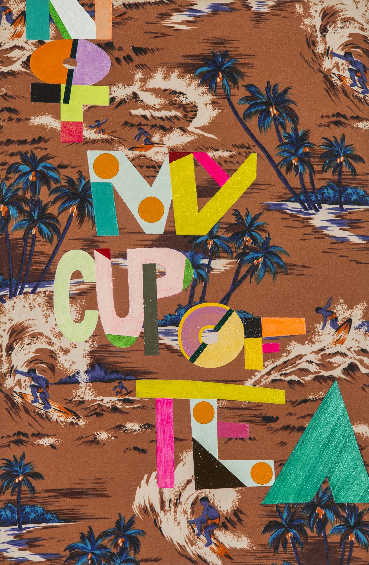 acrylic paint, tea towel, plywood