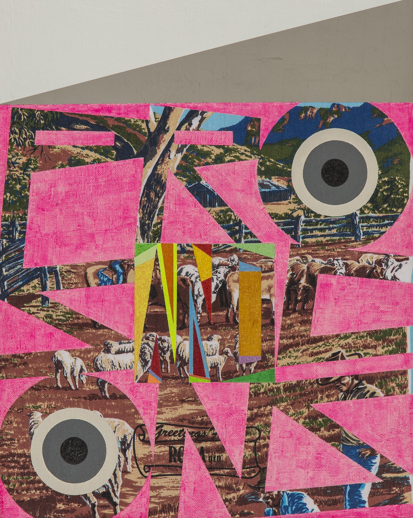 acrylic paint, cotton, mdf board