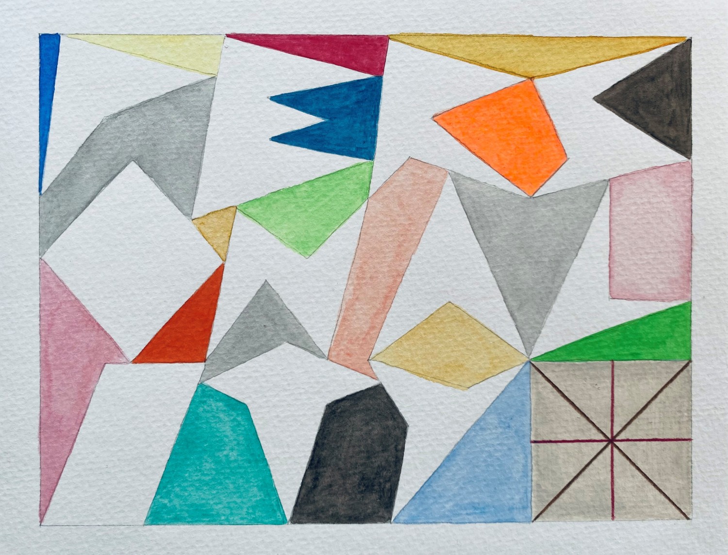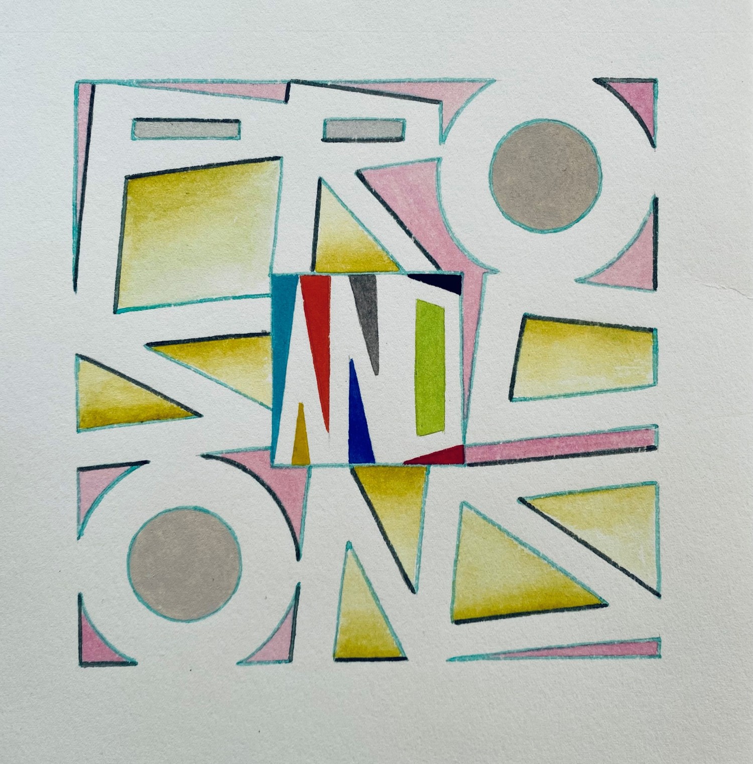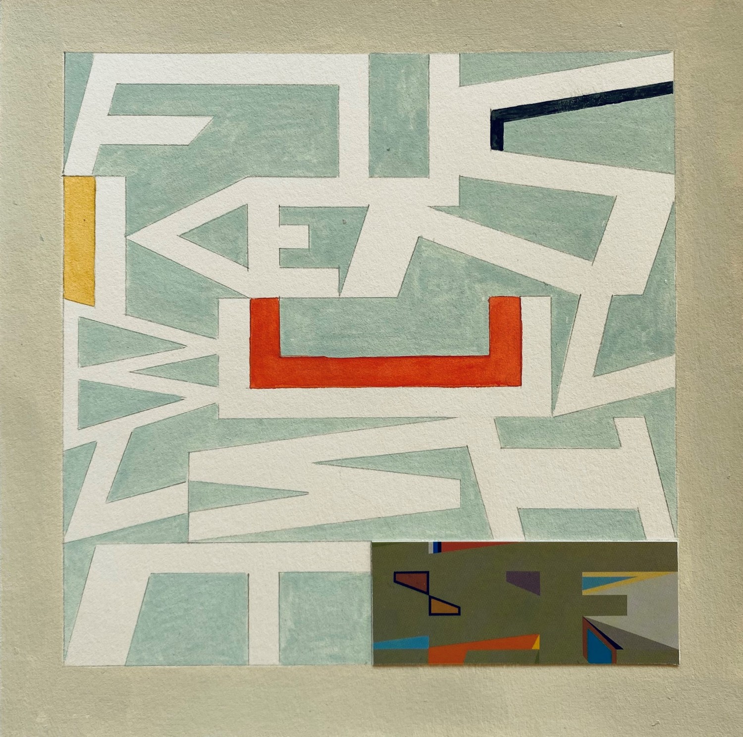 pencil, watercolour, collage, acrylic paint, printed on paper
