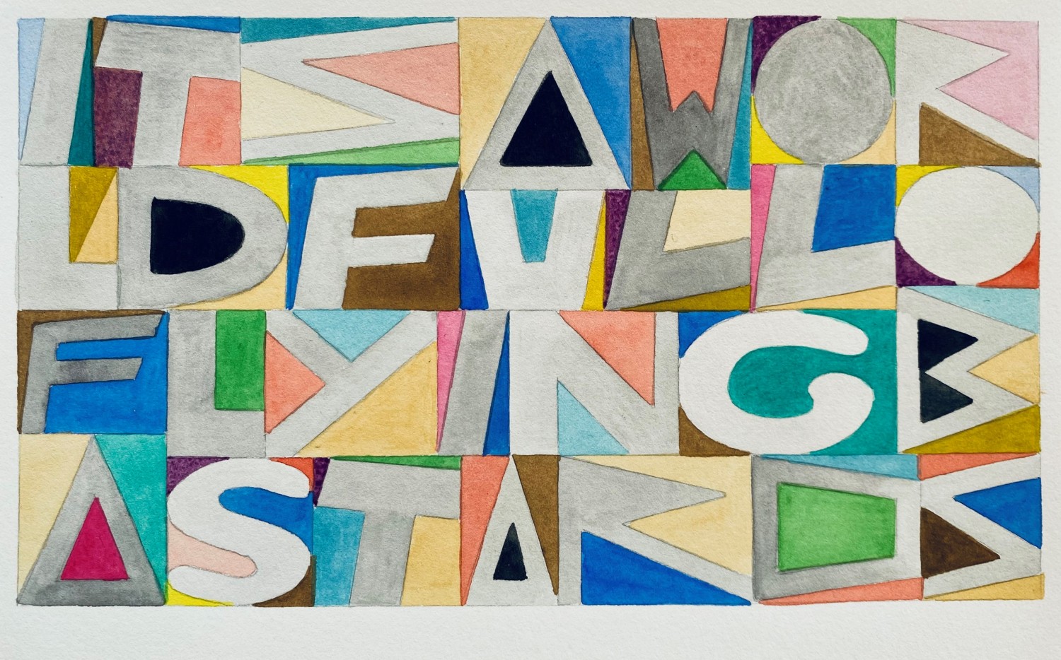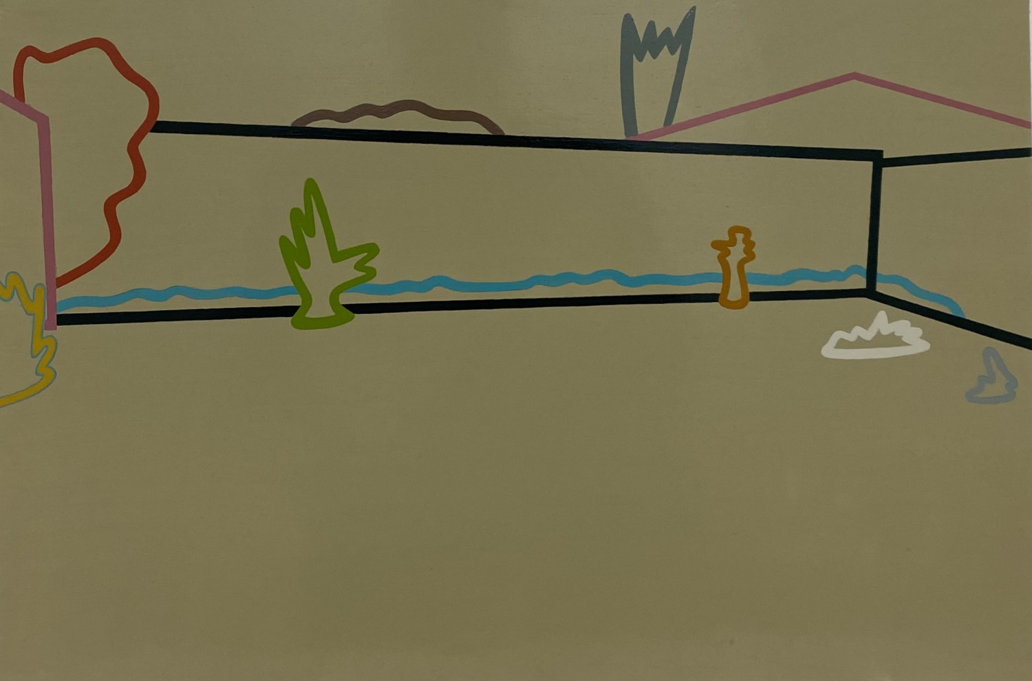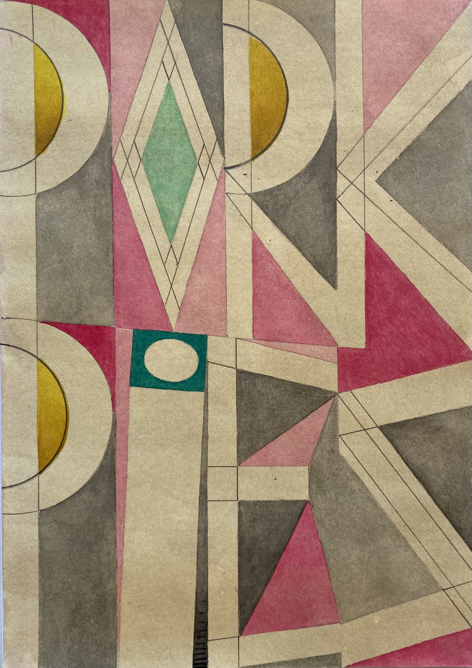 pencil, watercolour, collage, acrylic paint, printed on paper