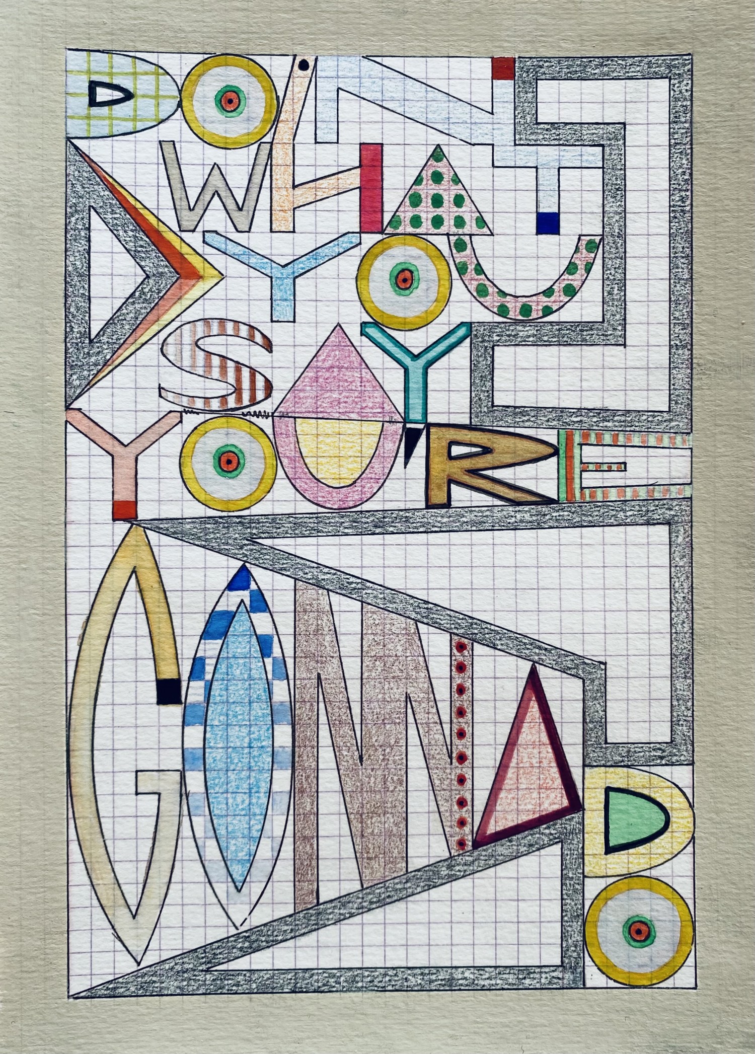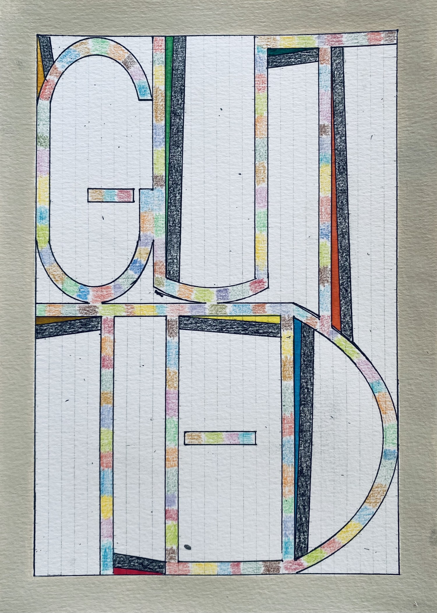 ink, coloured pencil, watercolour, inkjet print, acrylic paint on paper