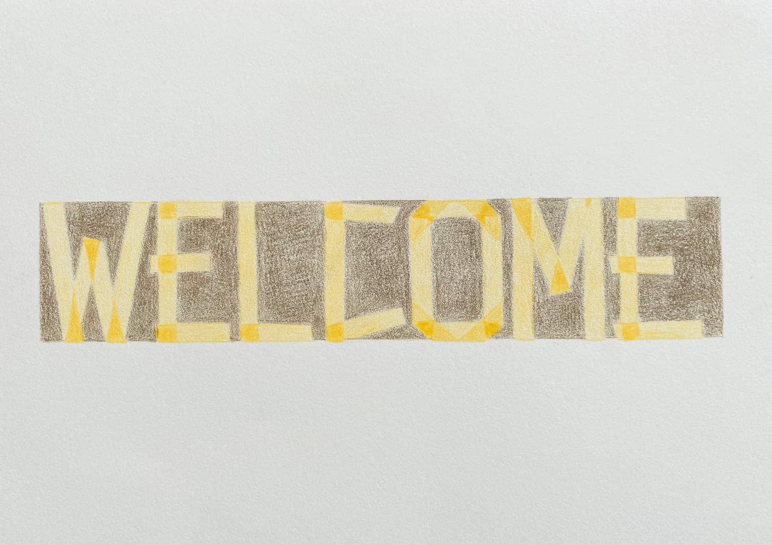 ink, coloured pencil, watercolour, collage, inkjet print, acrylic paint on paper