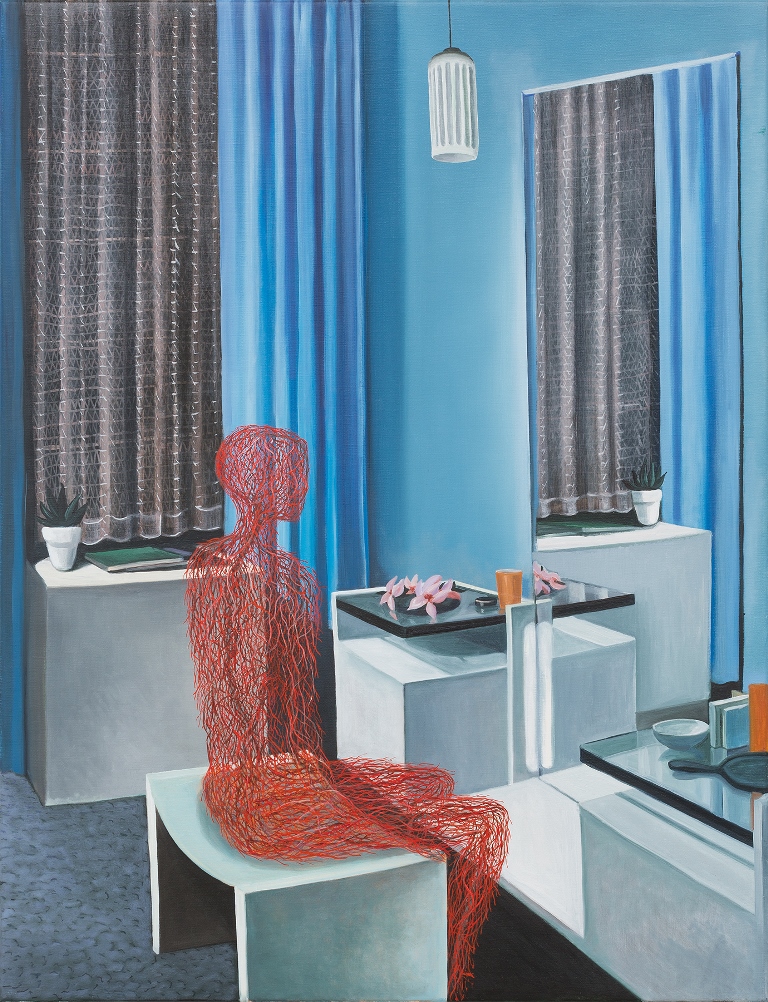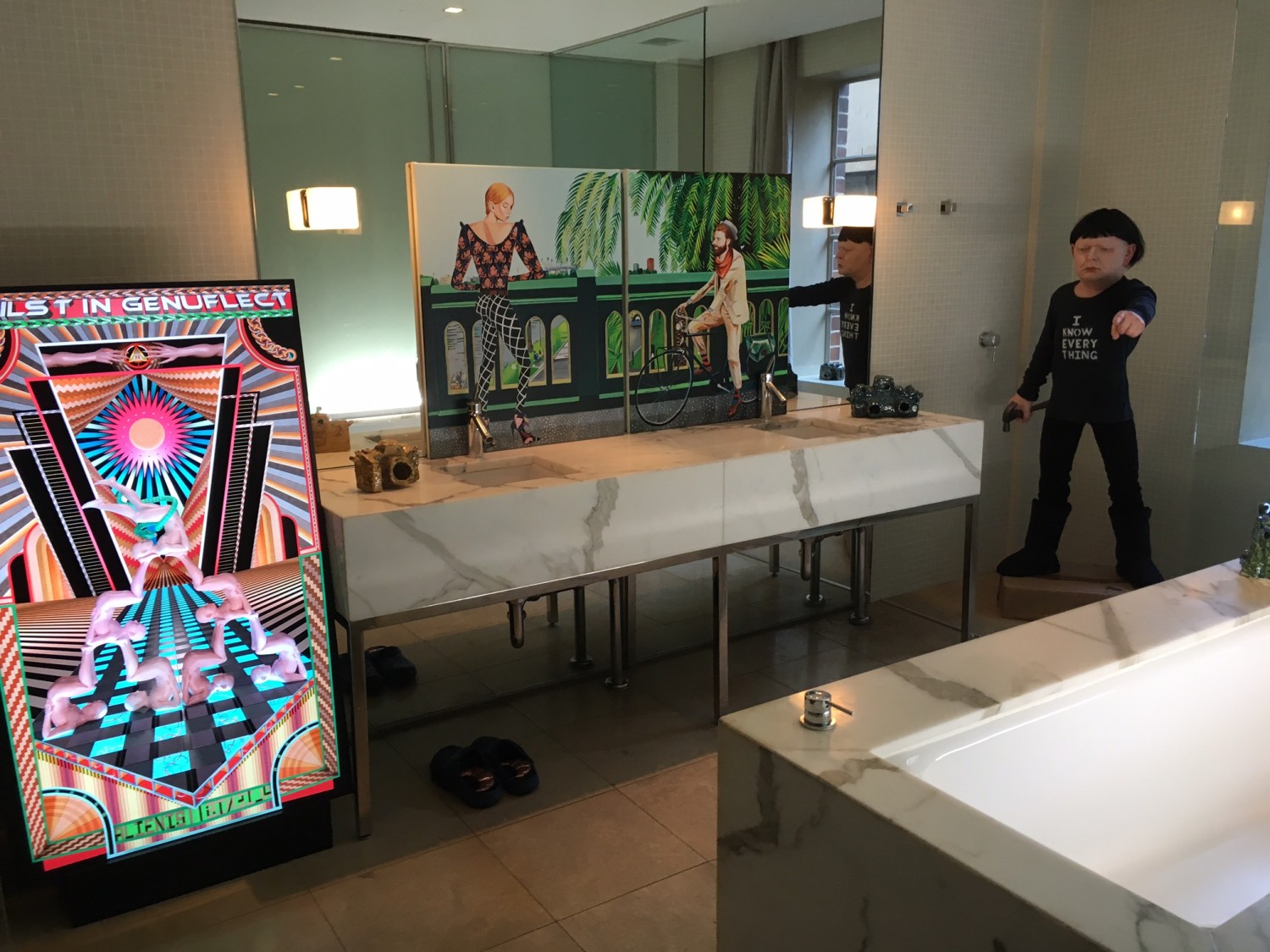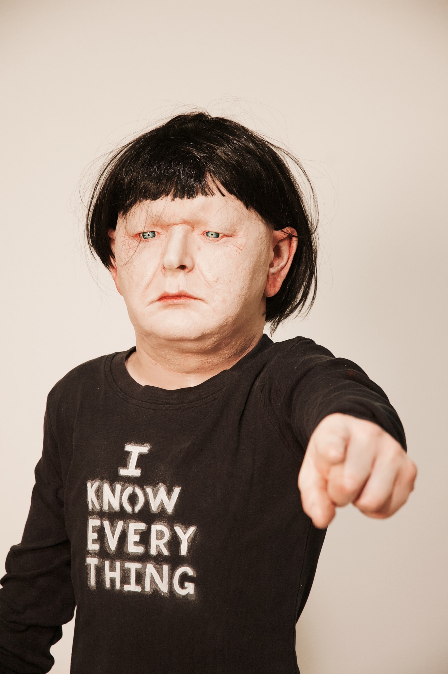 painted cast urethane on expanded polystyrene, fibreglass, clothing, wig, expanded urethane foam with painted acrylic plaster base