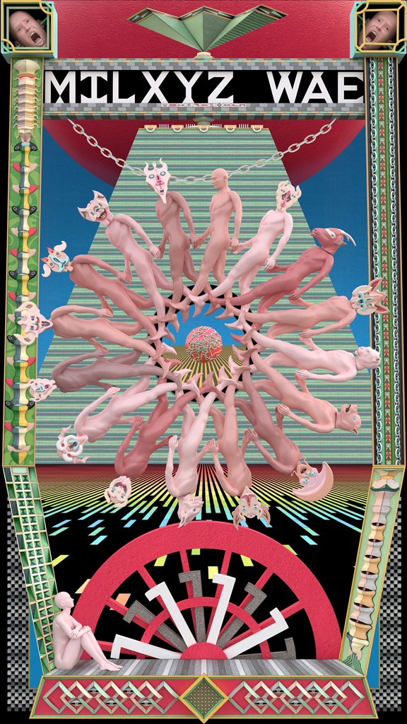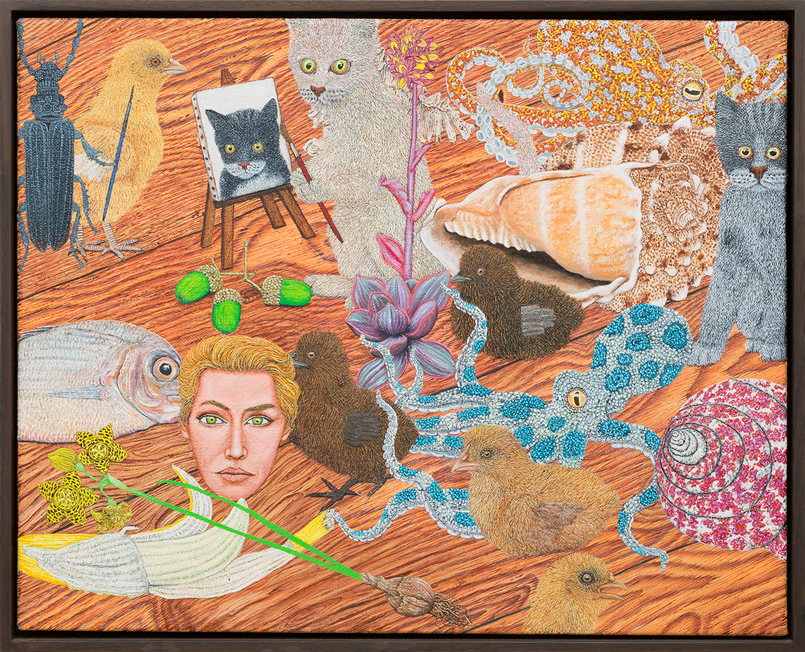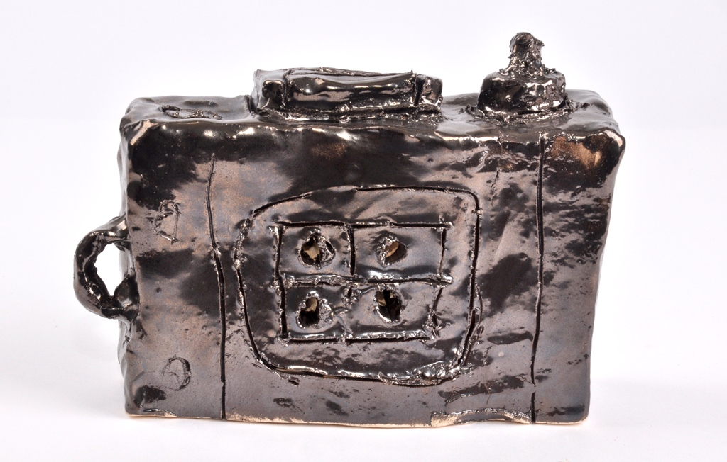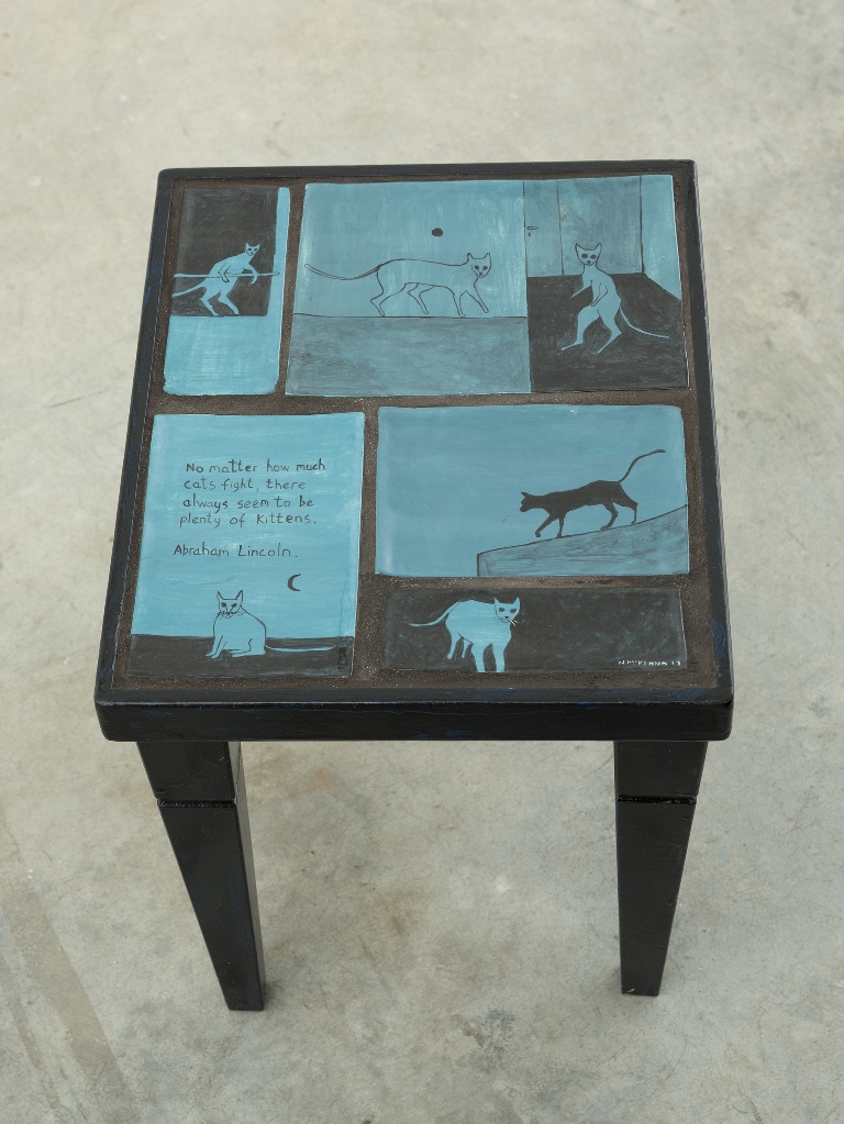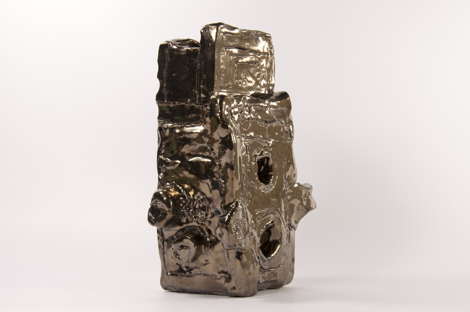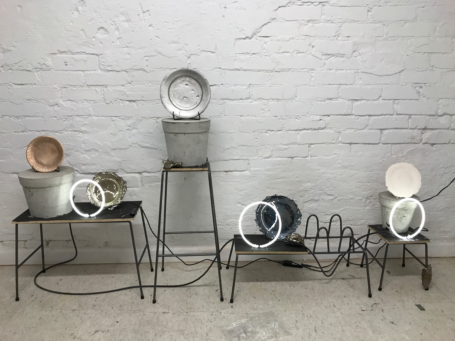 glazed & unglazed ceramic, bronze, wood, tin, steel, paint, neon