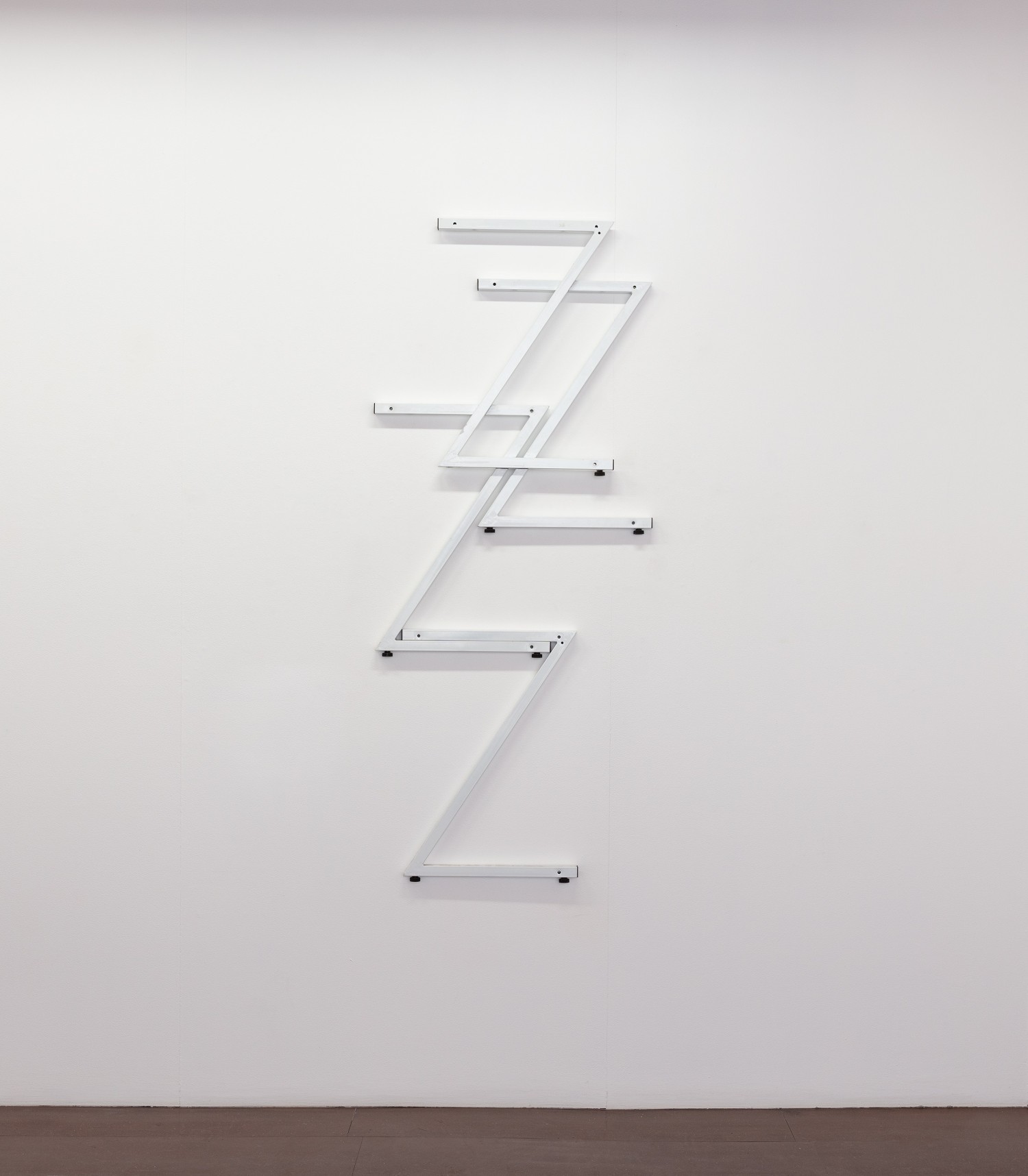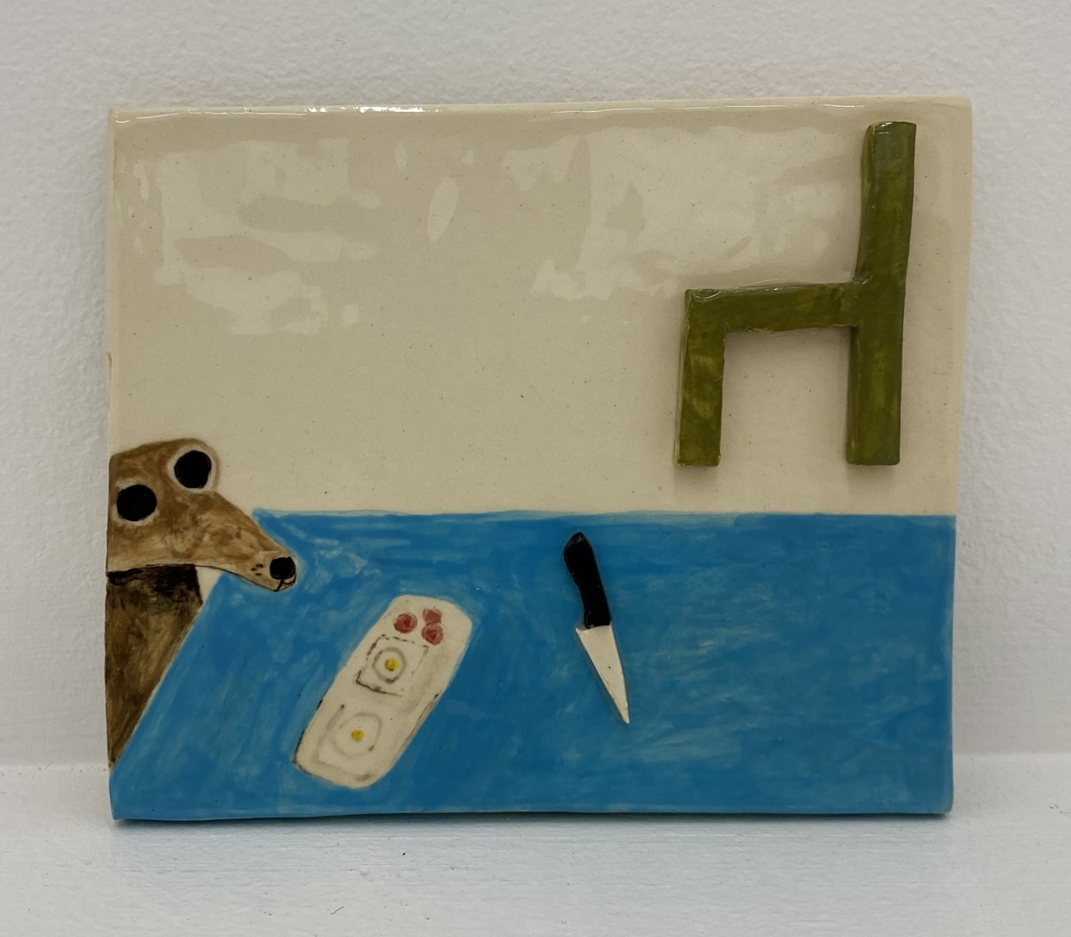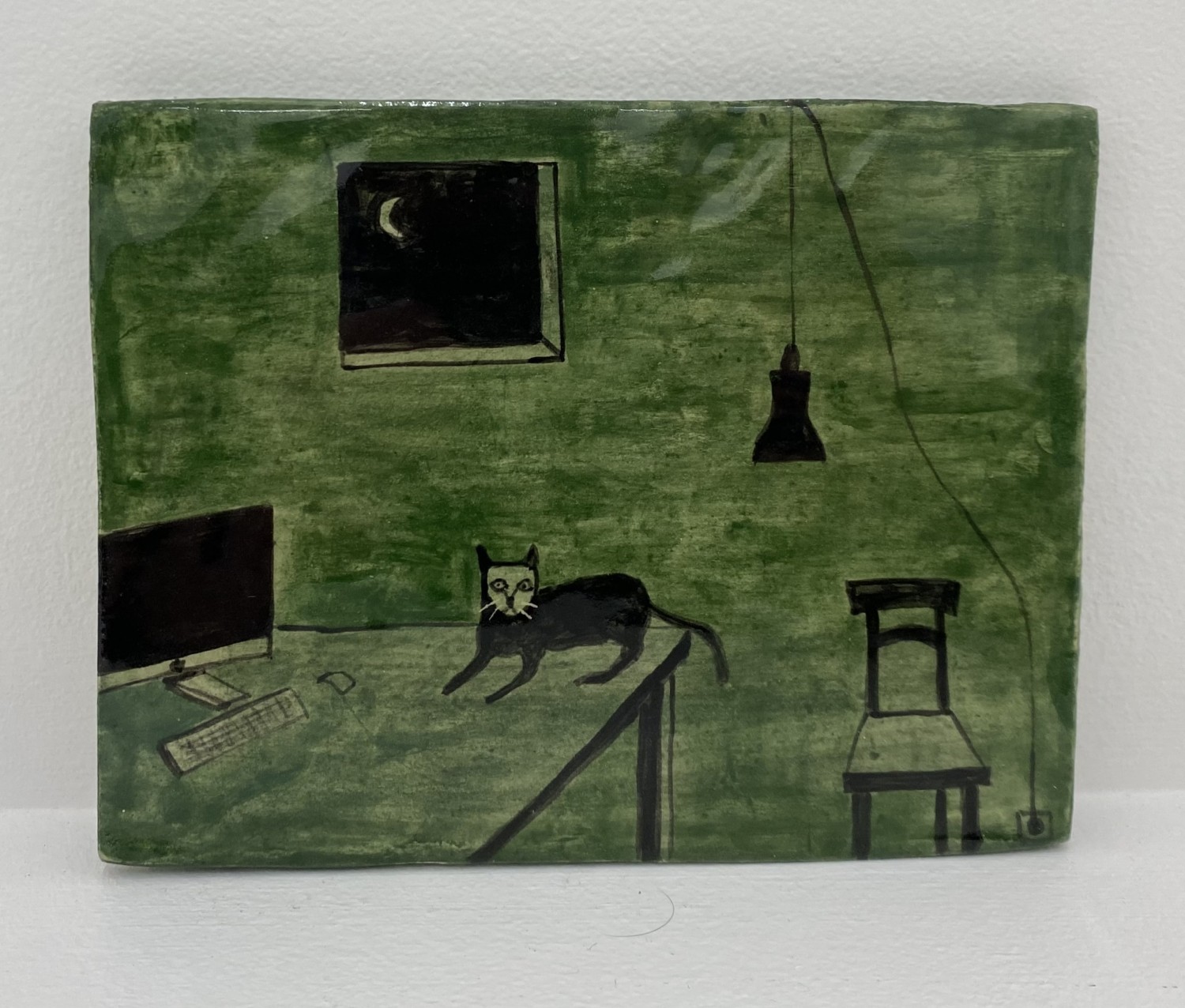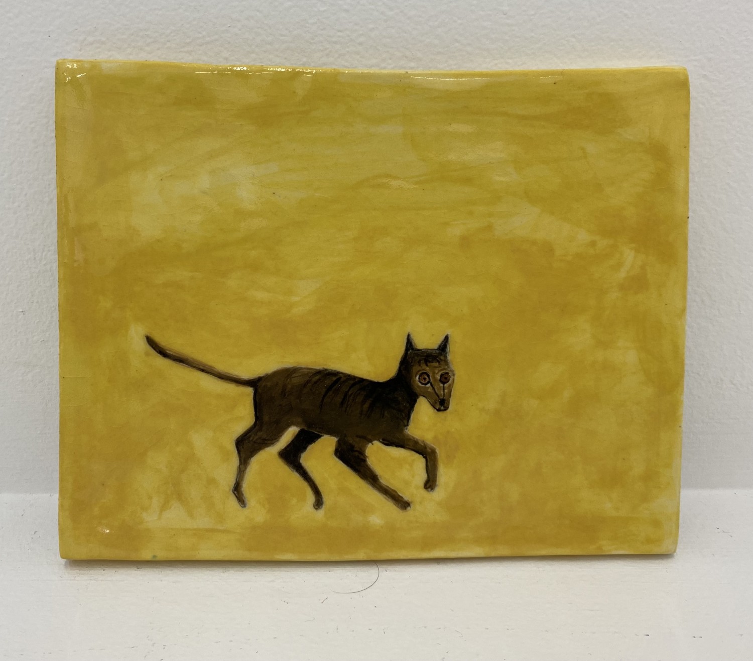 hand crocheted silk, alpaca, cashmere and camel hair over wood, human hair, synthetic polymer emulsion.
