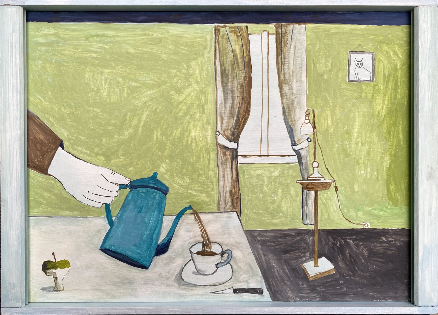 double espresso two sugars cupped at a wedding breakfast stirred with the rear wheel of a street vendor’s bicycle
