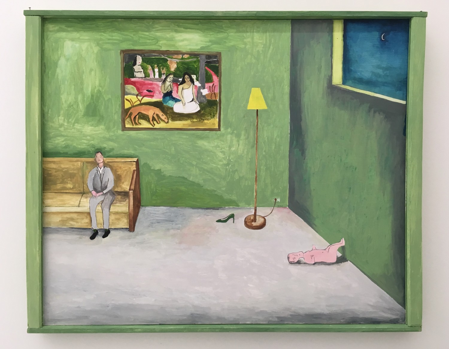 Figure: Painted cast urethane on expanded polystyrene, fibreglass, clothing, wig, expanded urethane foam Box: Painted acrylic plaster and fibreglass