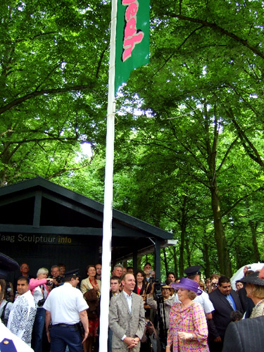 Jon Campbell and Queen Beatrix of The Netherlands at the raising of the Yeah Flag