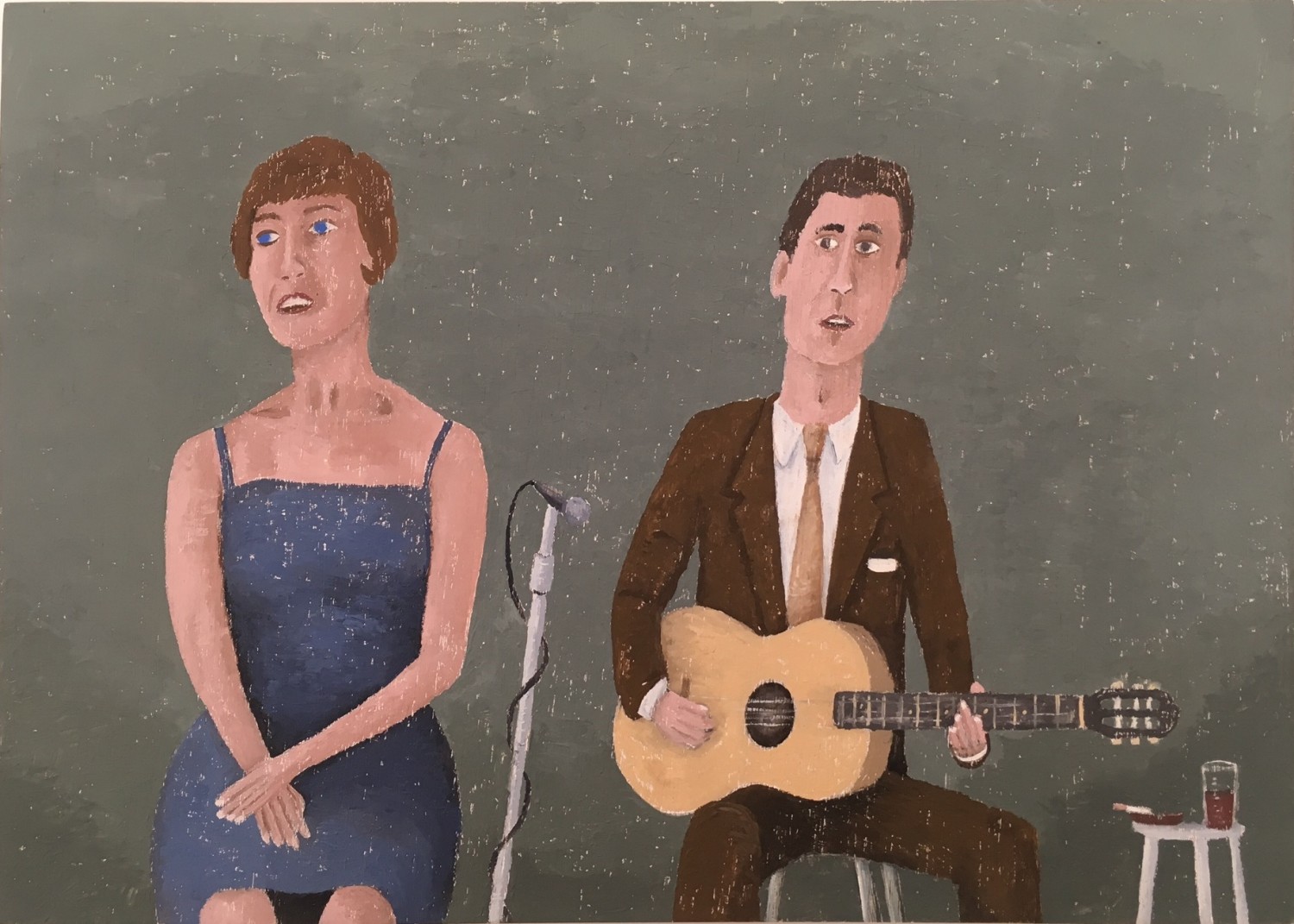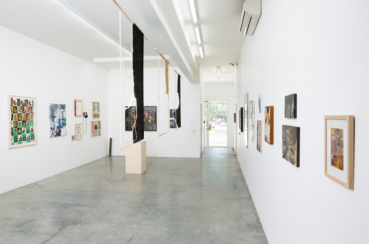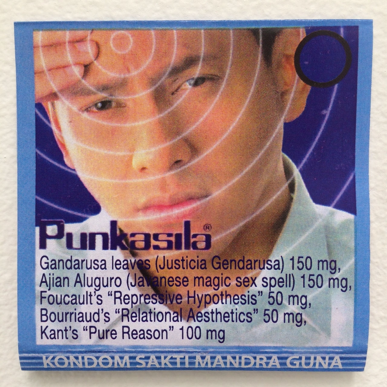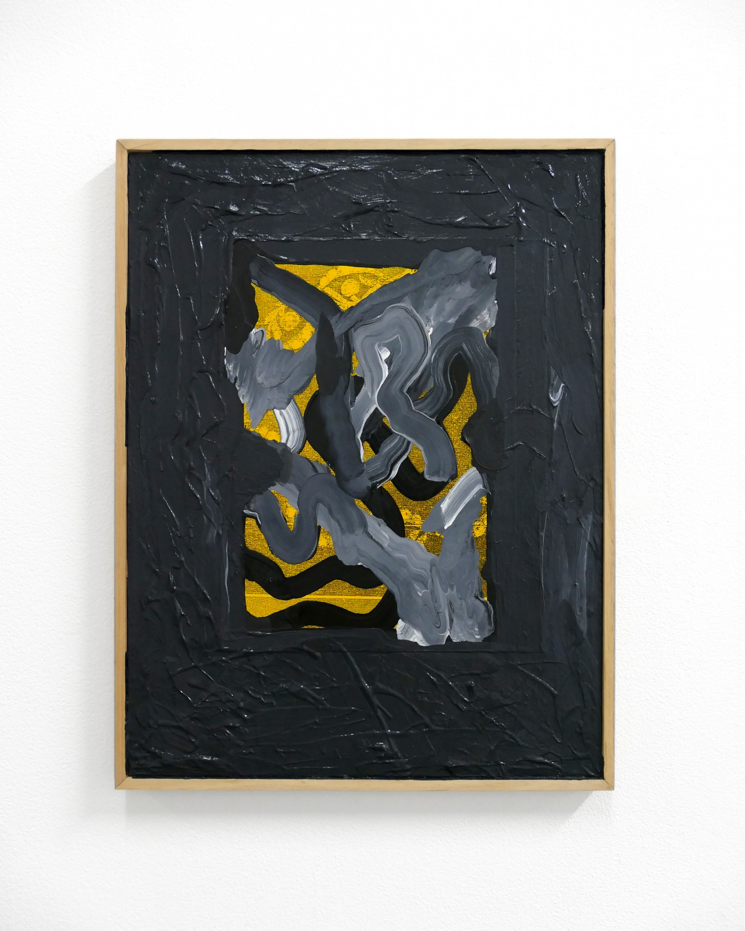 synthetic polymer paint and photocopy on paper on board, artist frame