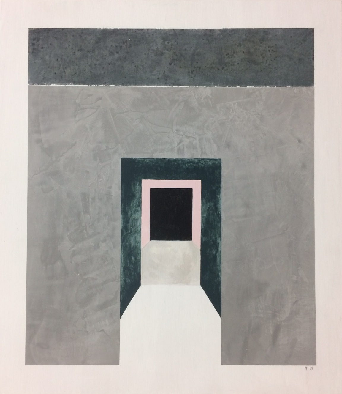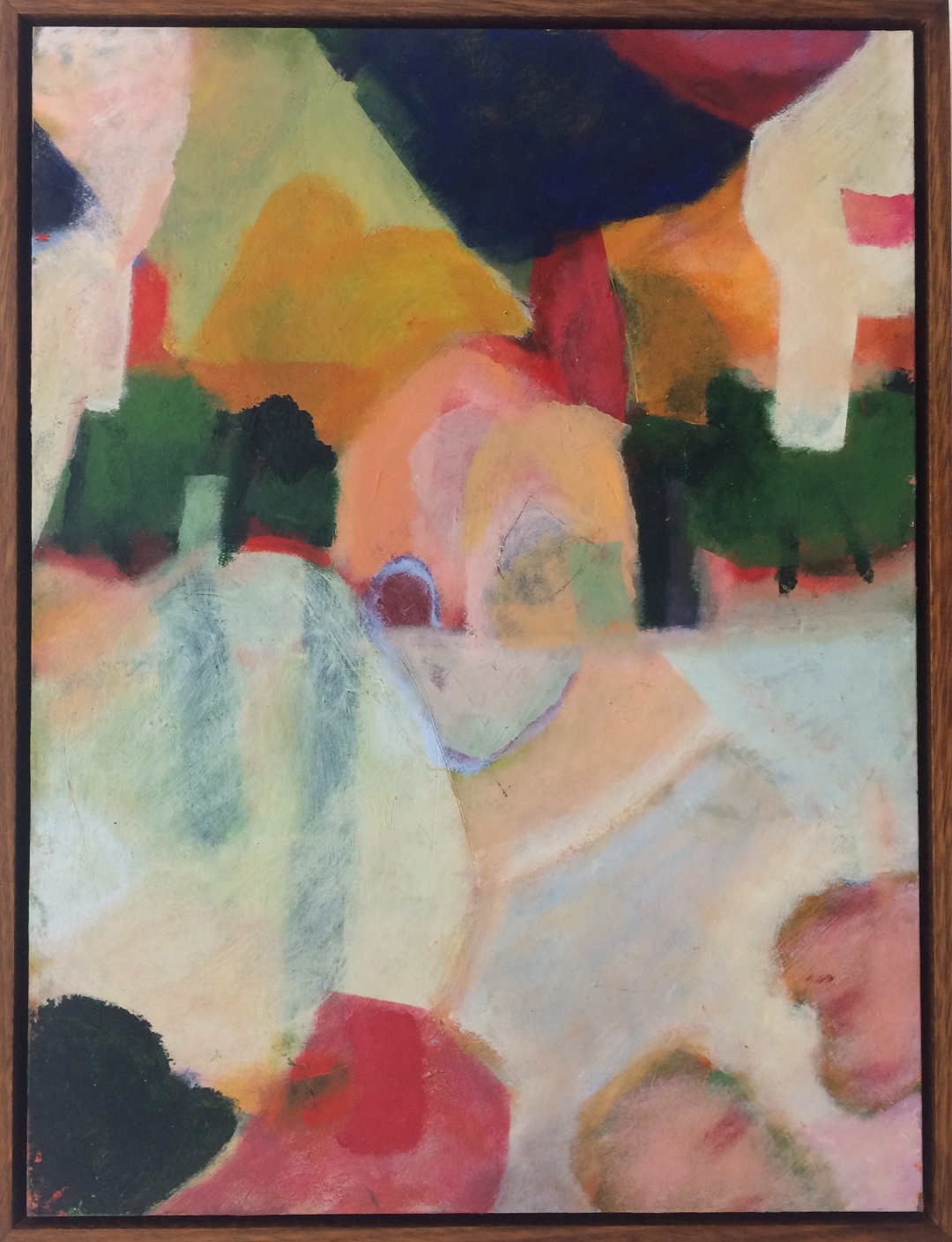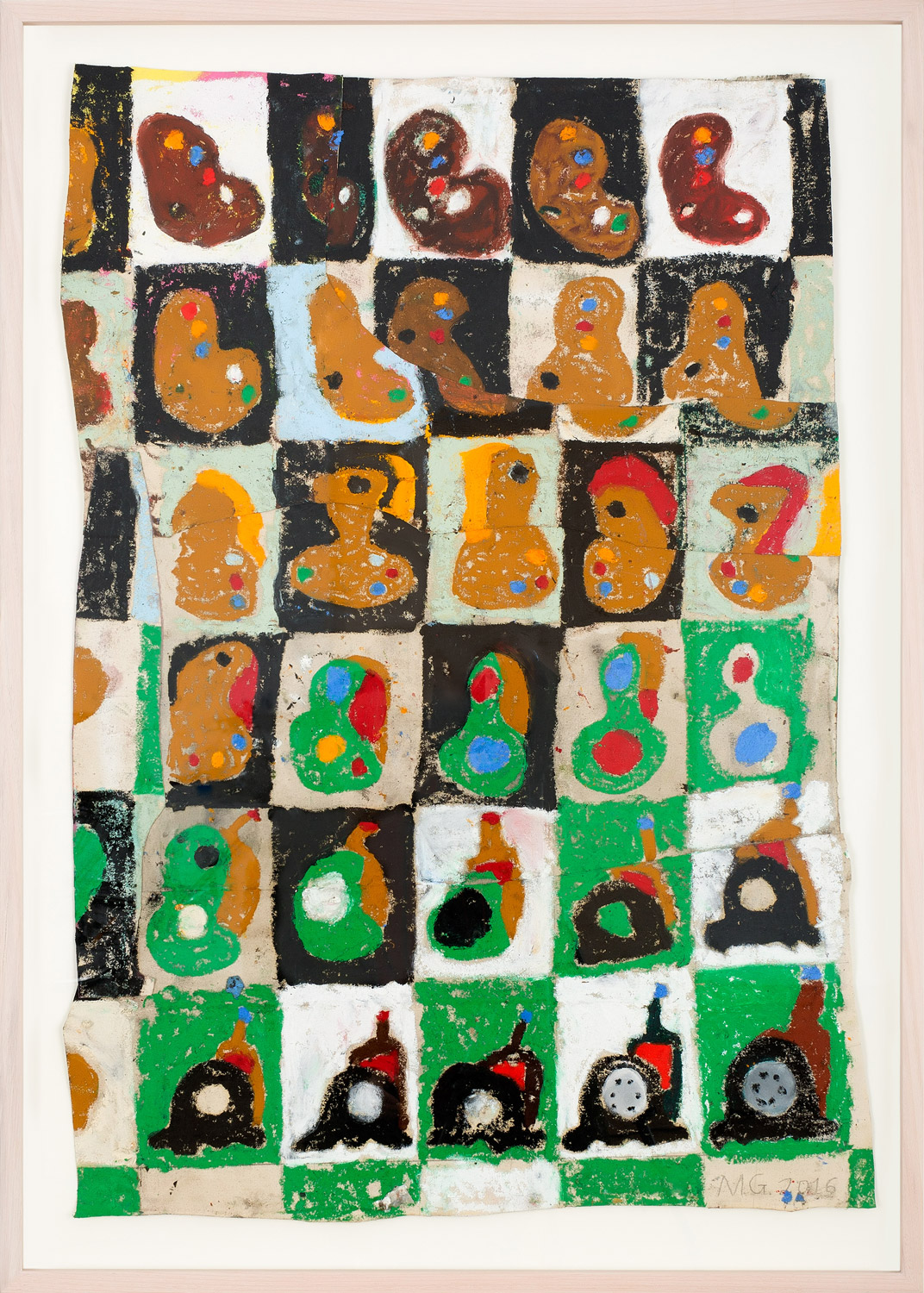 synthetic polymer paint and photocopy transfer on paper on board, artist frame