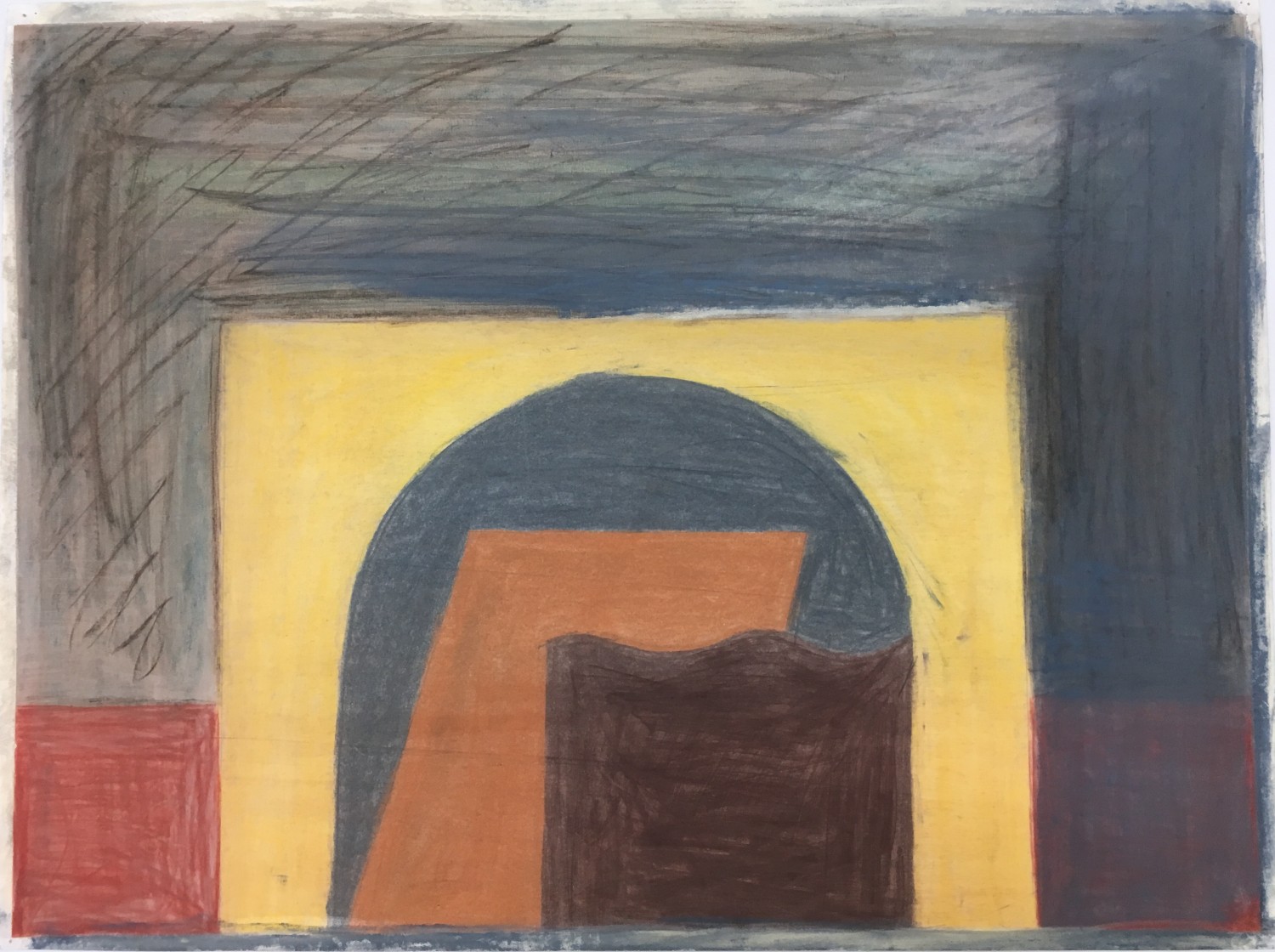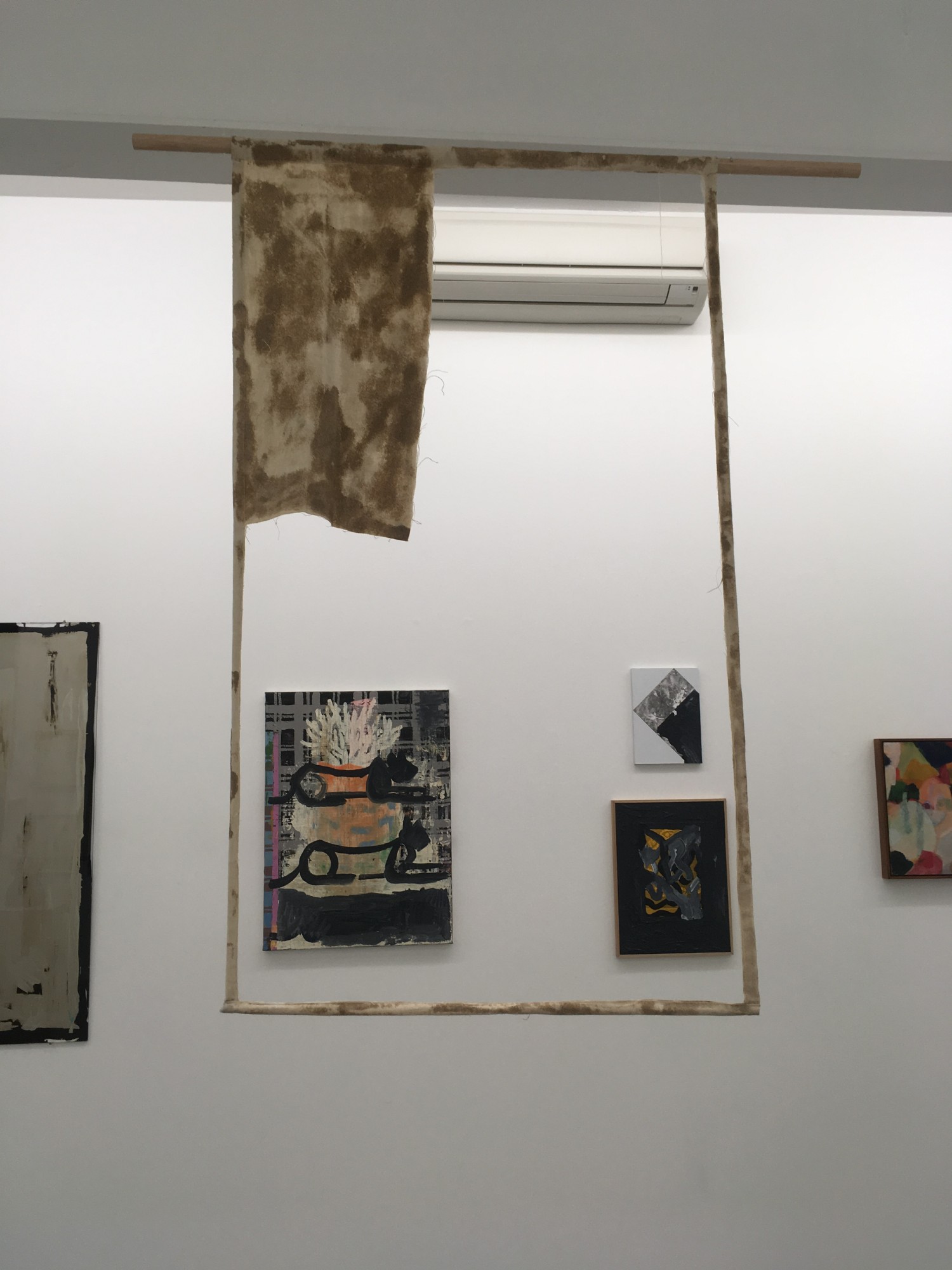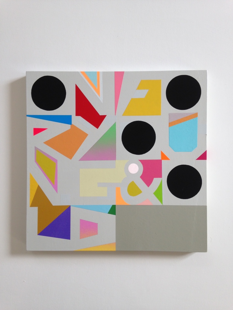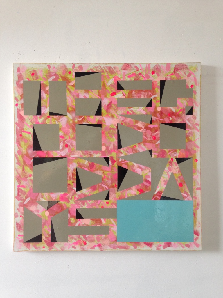 synthetic polymer paint and photocopy transfer on paper on board, artist frame