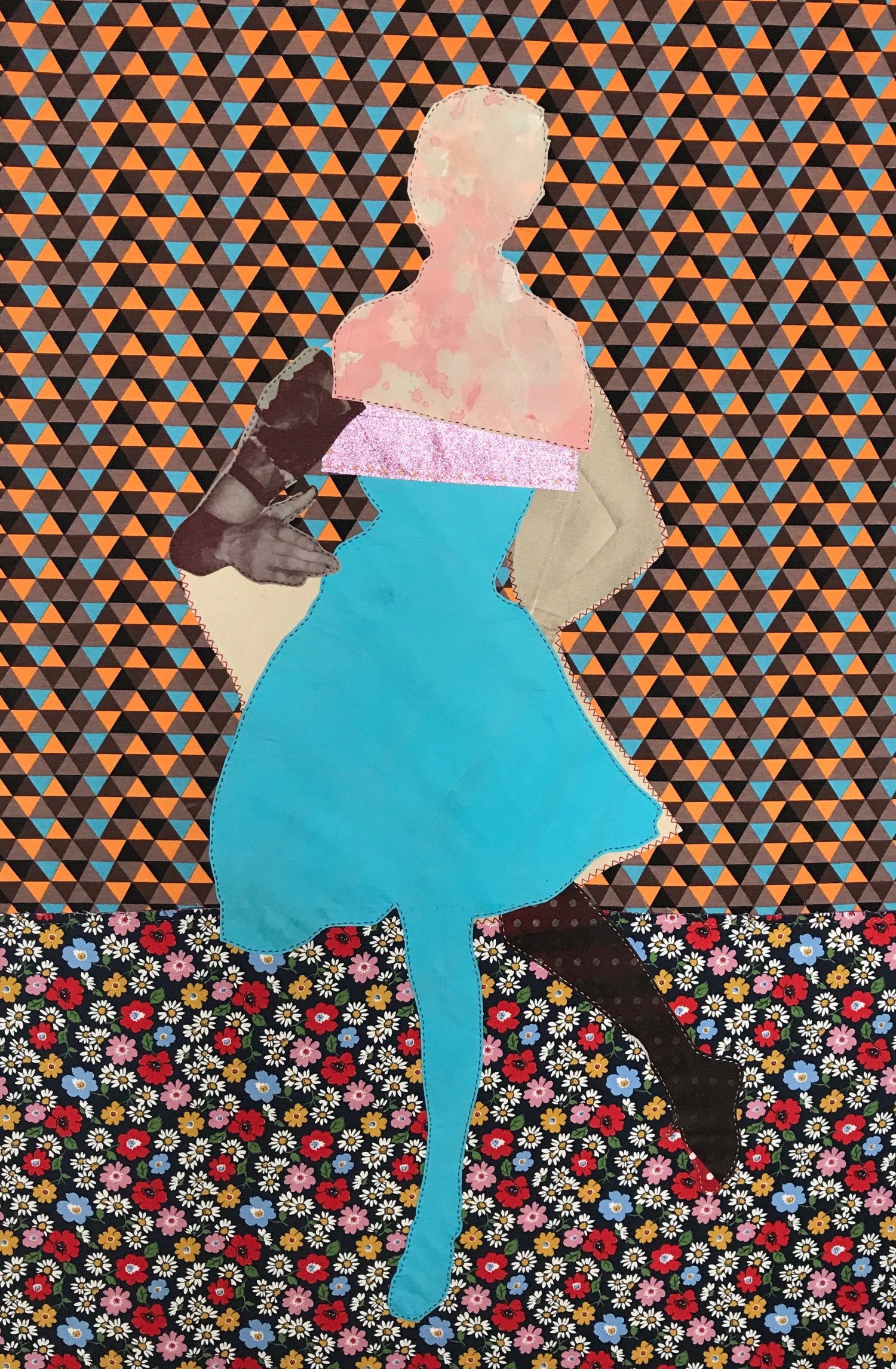 Various collage elements on cotton canvas