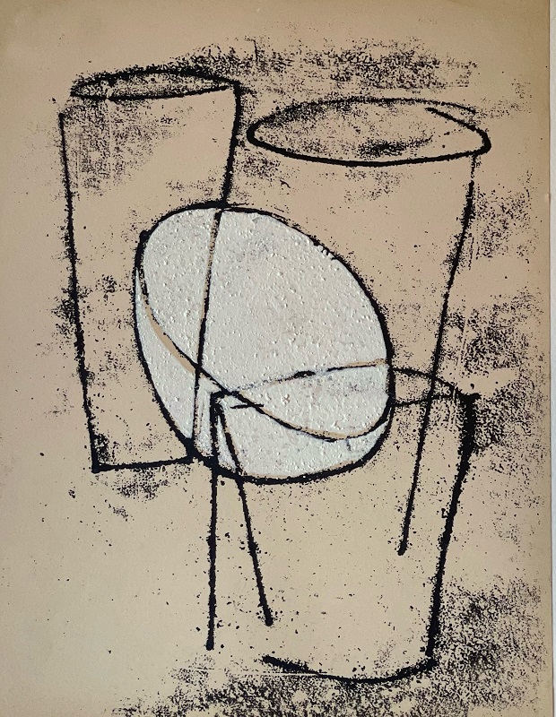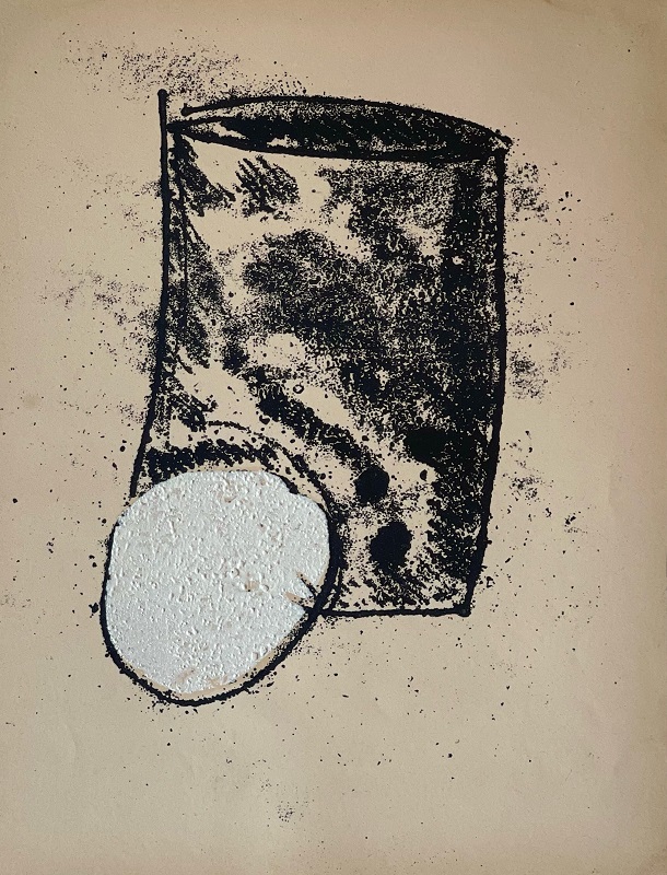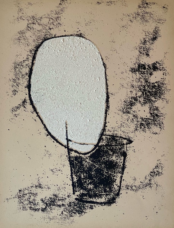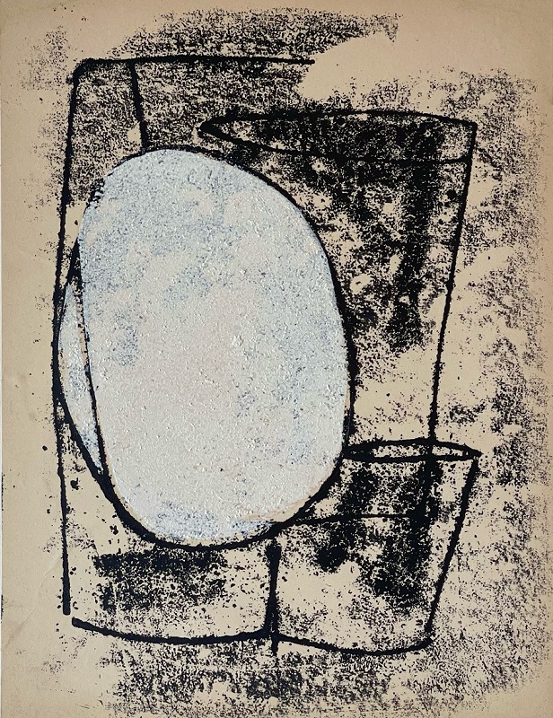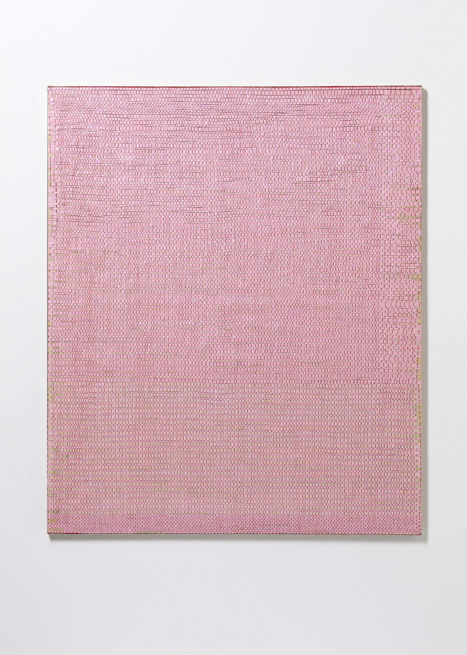 synthetic polymer emulsion, iridescent pigment, Japanese kozo natural paper, linen and cotton thread on linen