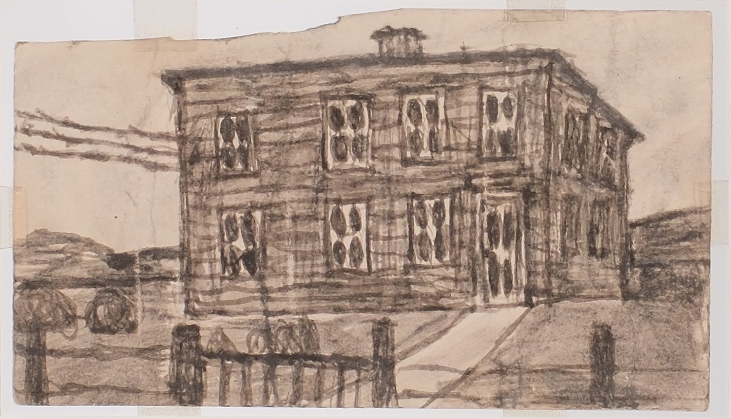 Untitled (Landscape with barn and trees)