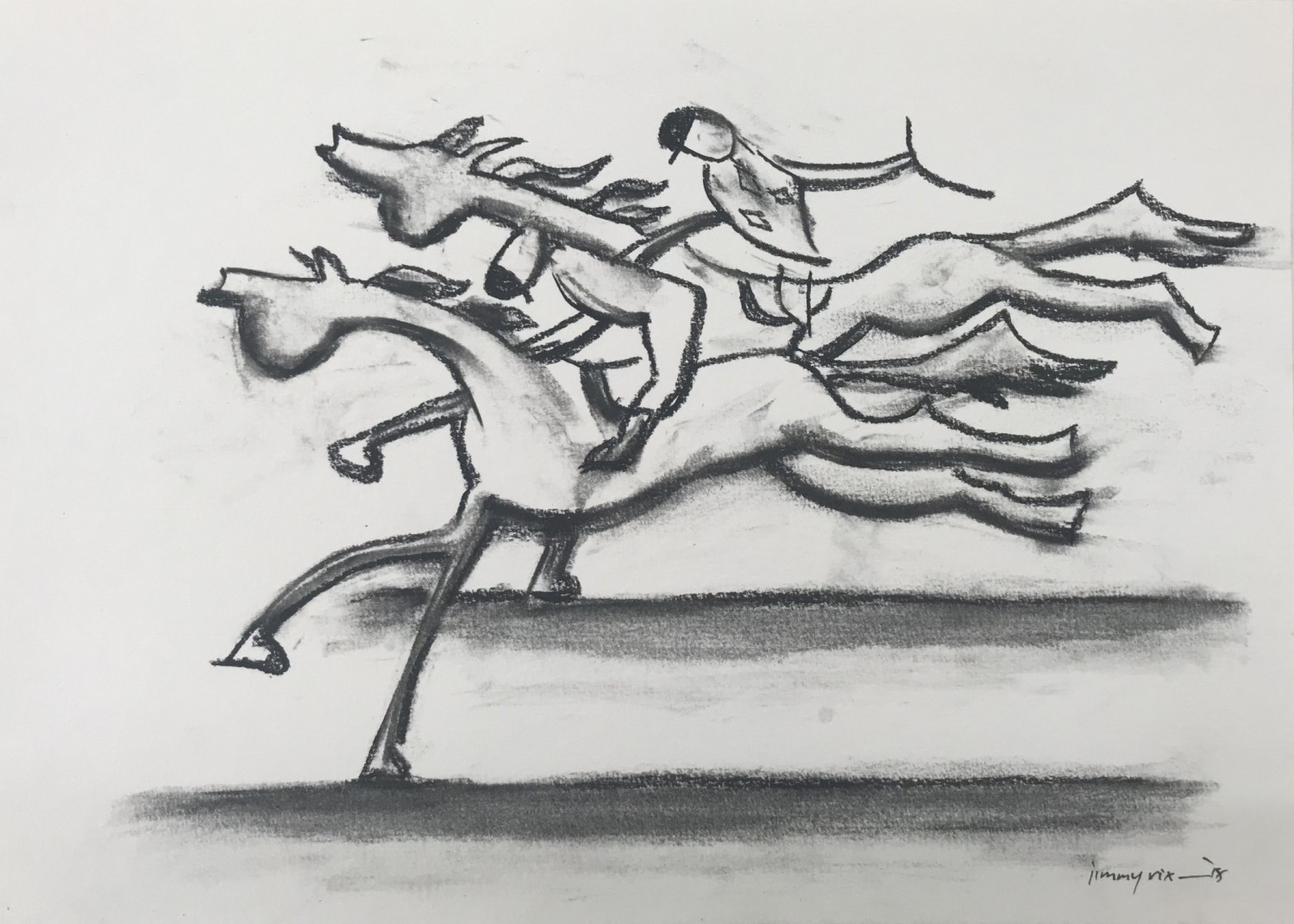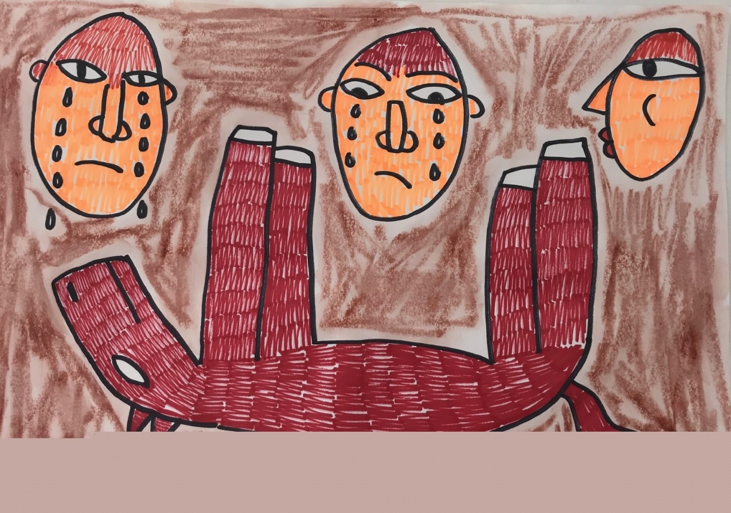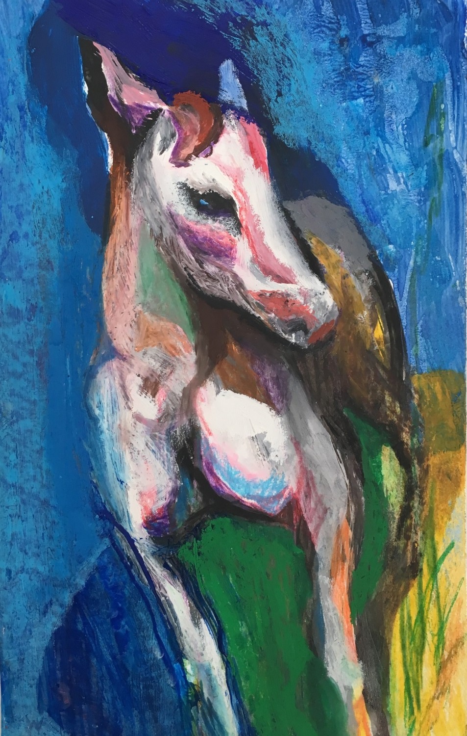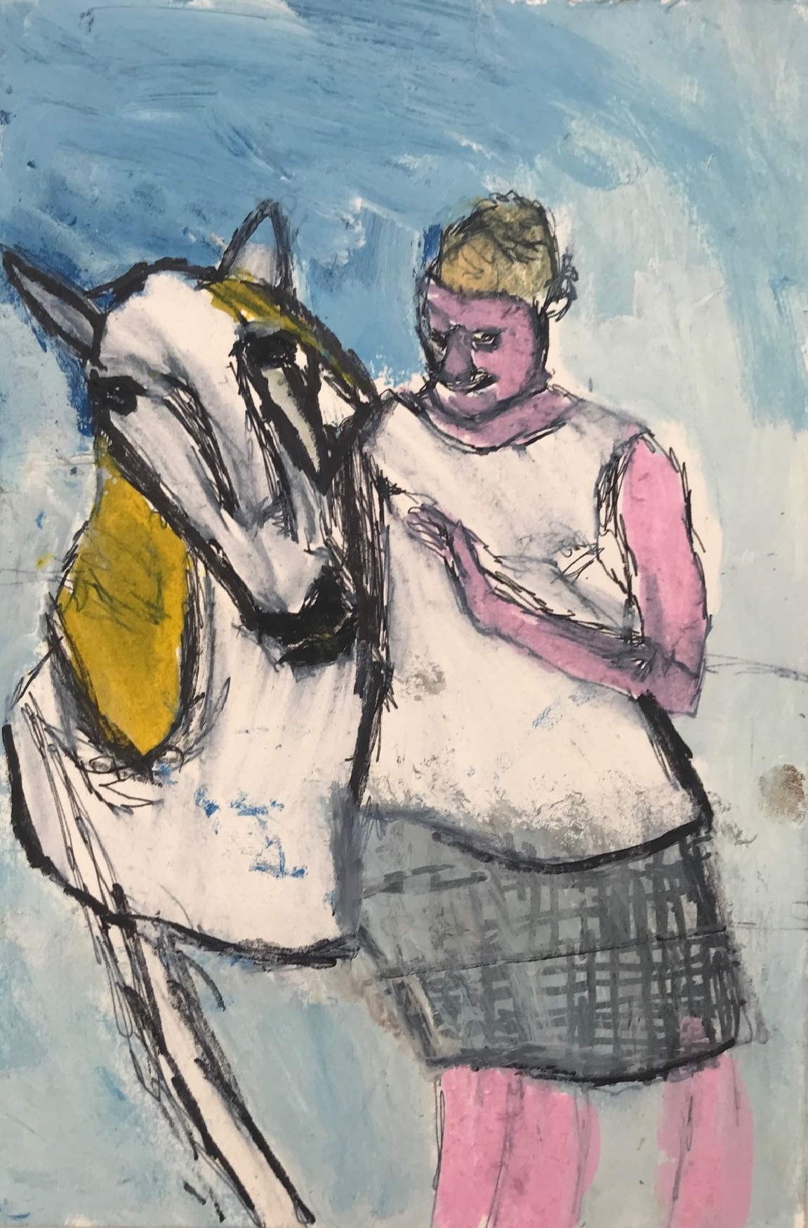 oil paint, oil pastel, colour pencil, watercolour, gouache, acrylic paint and charcoal pencil on paper