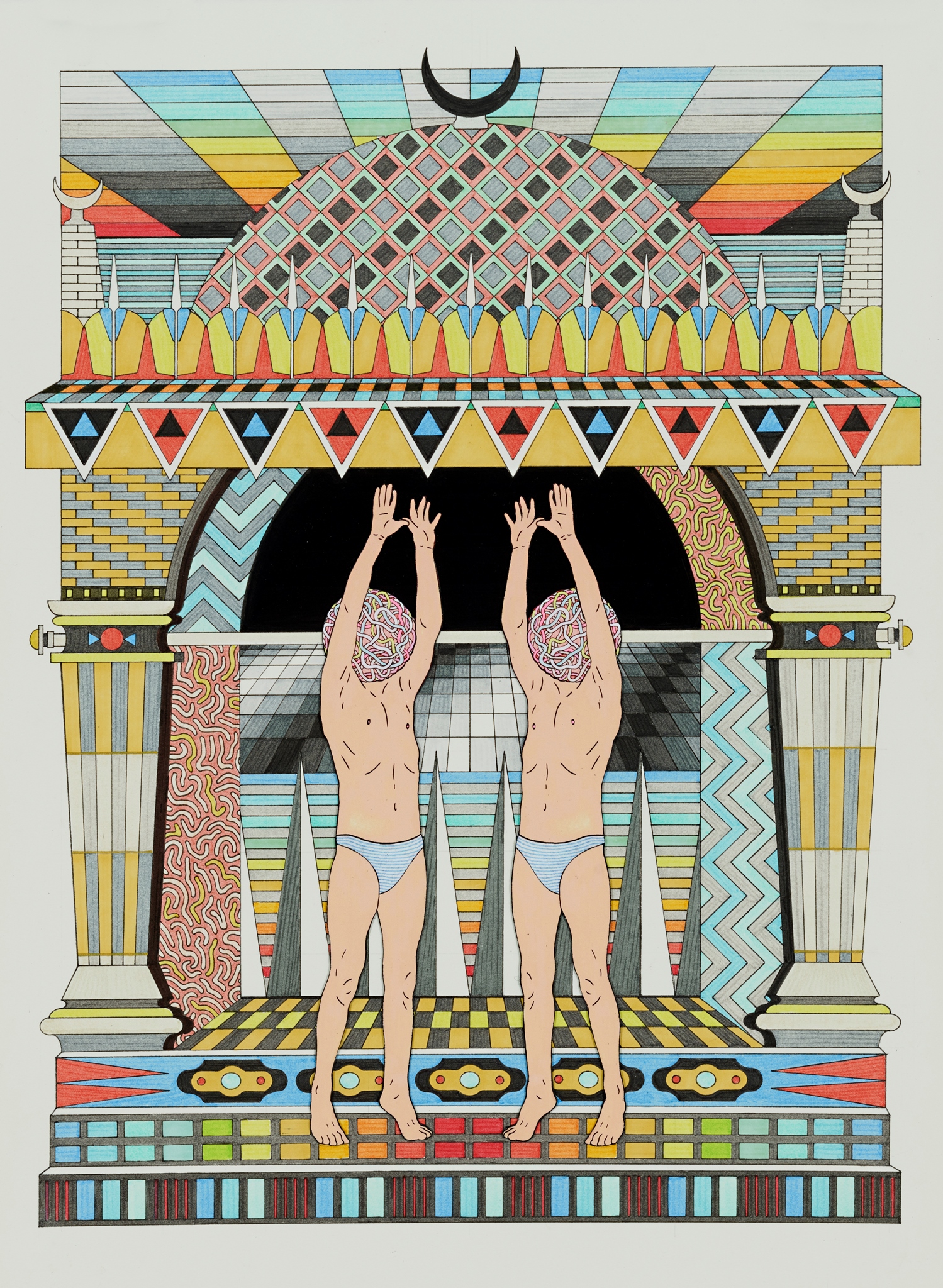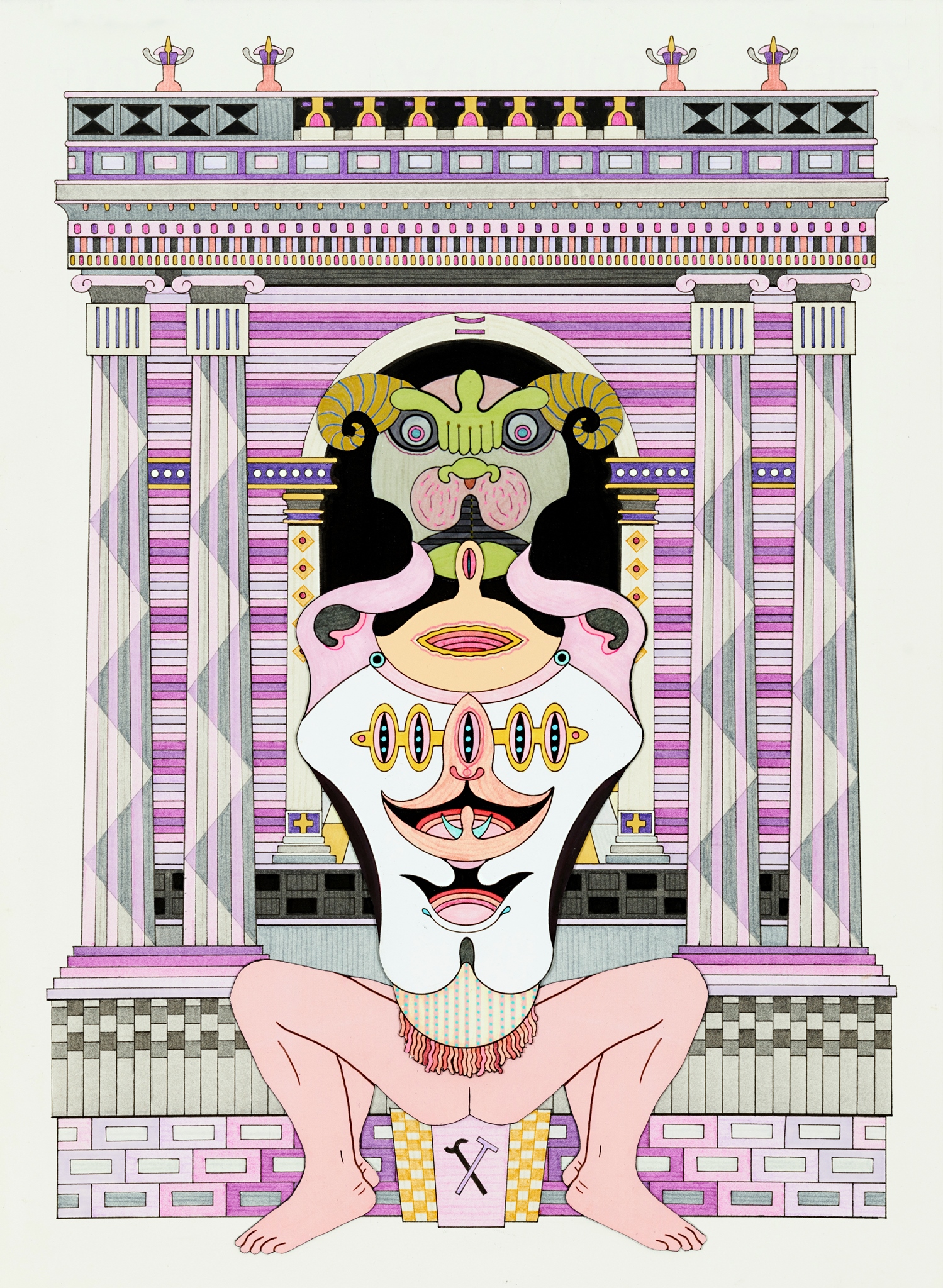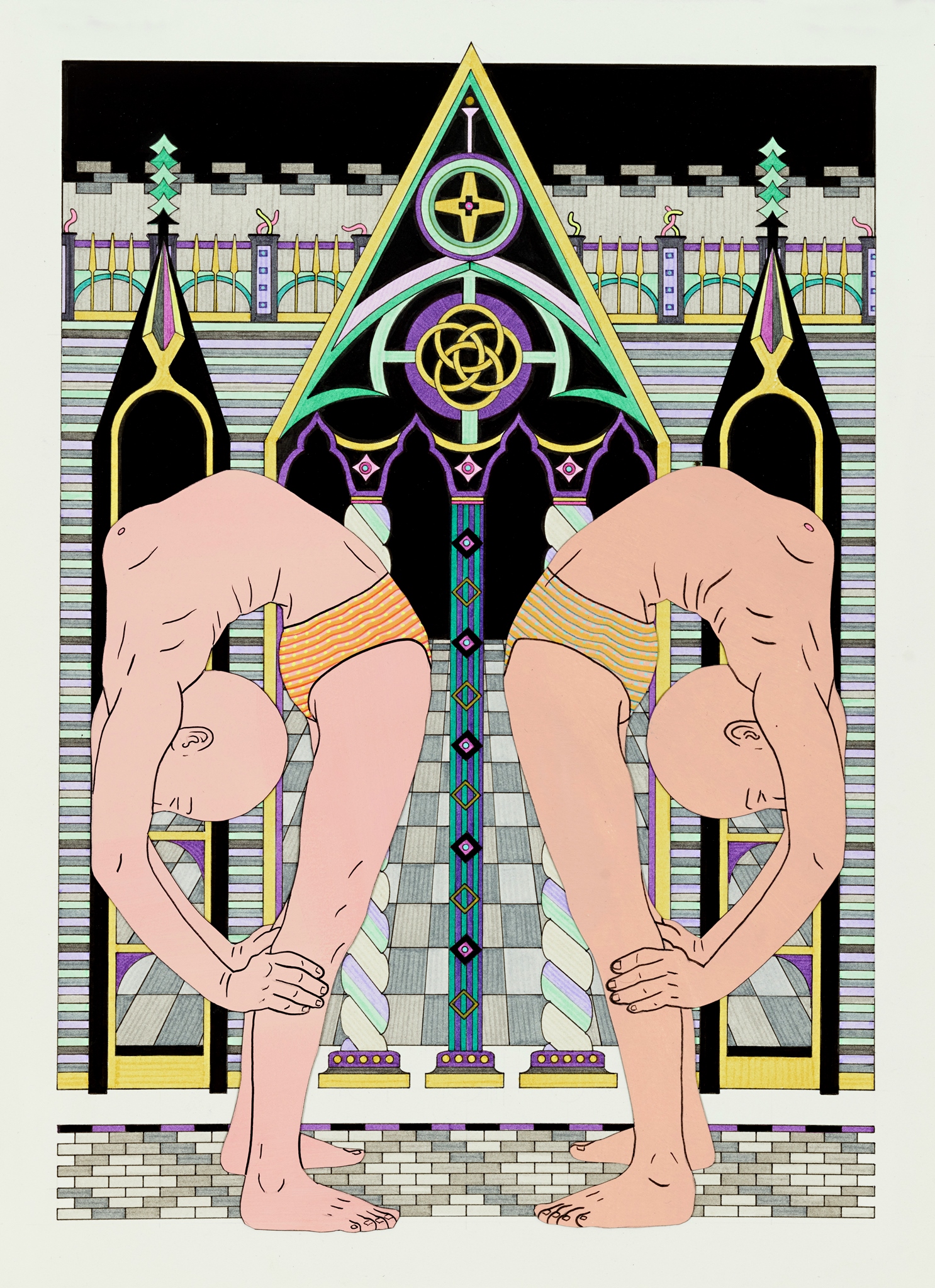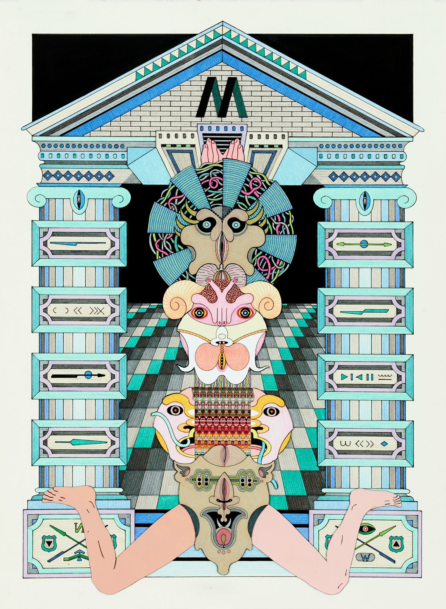 Pen, fibre tipped markers and gouache on paper