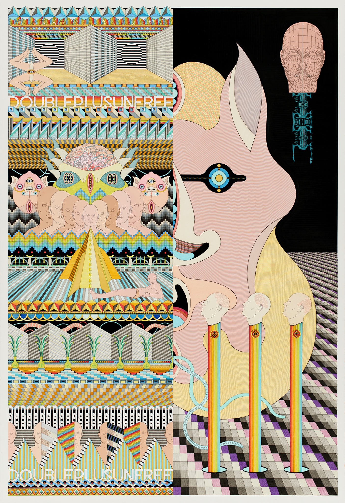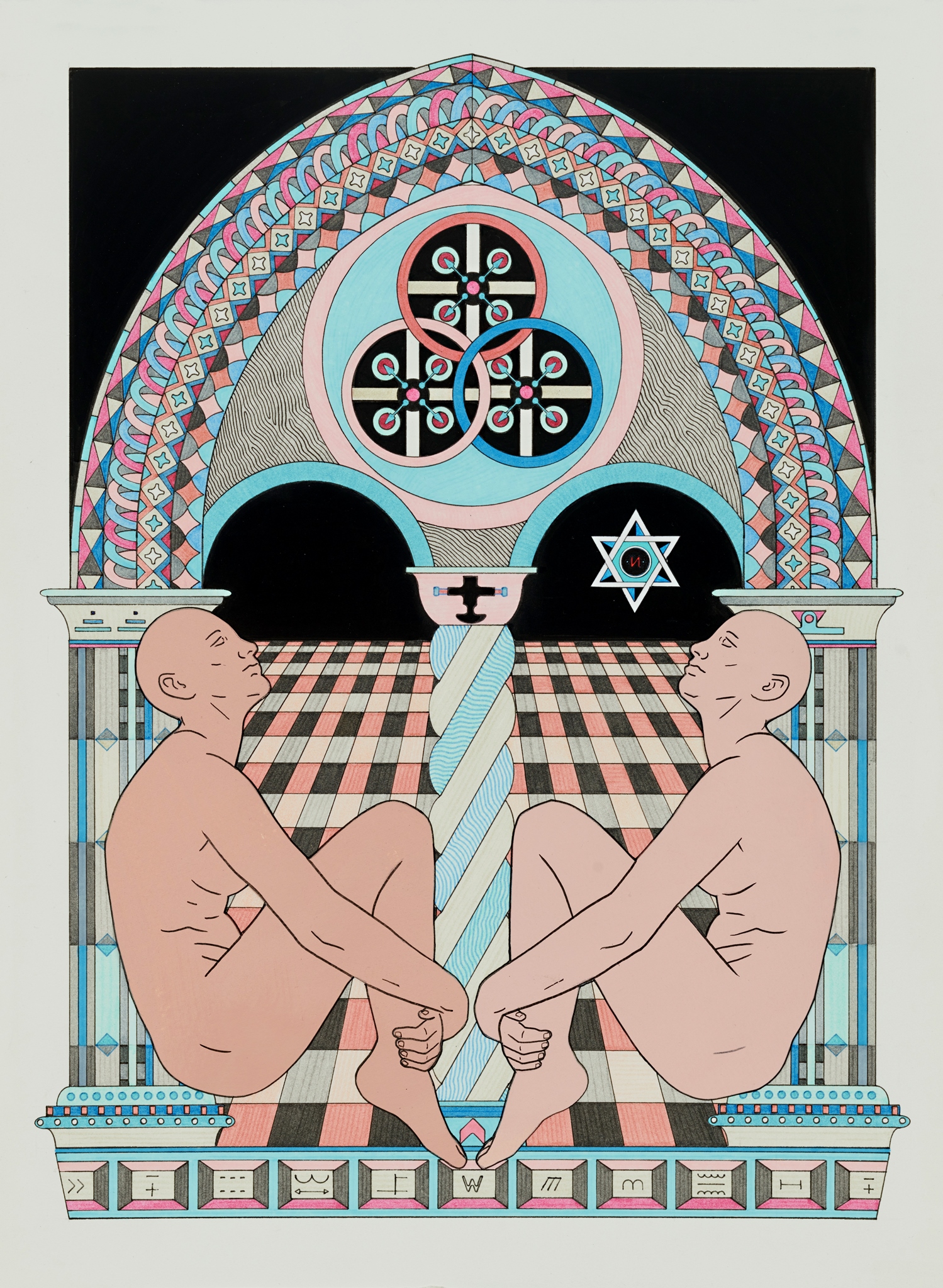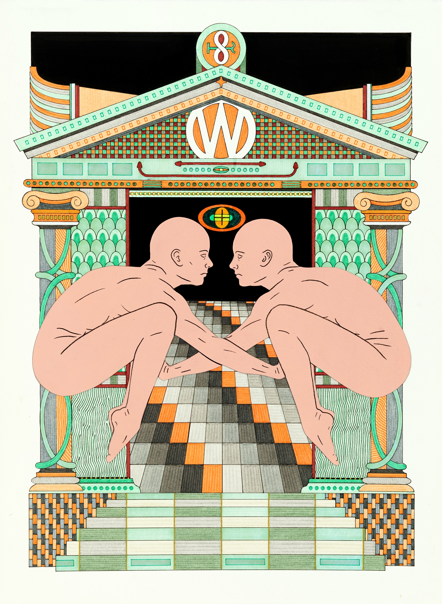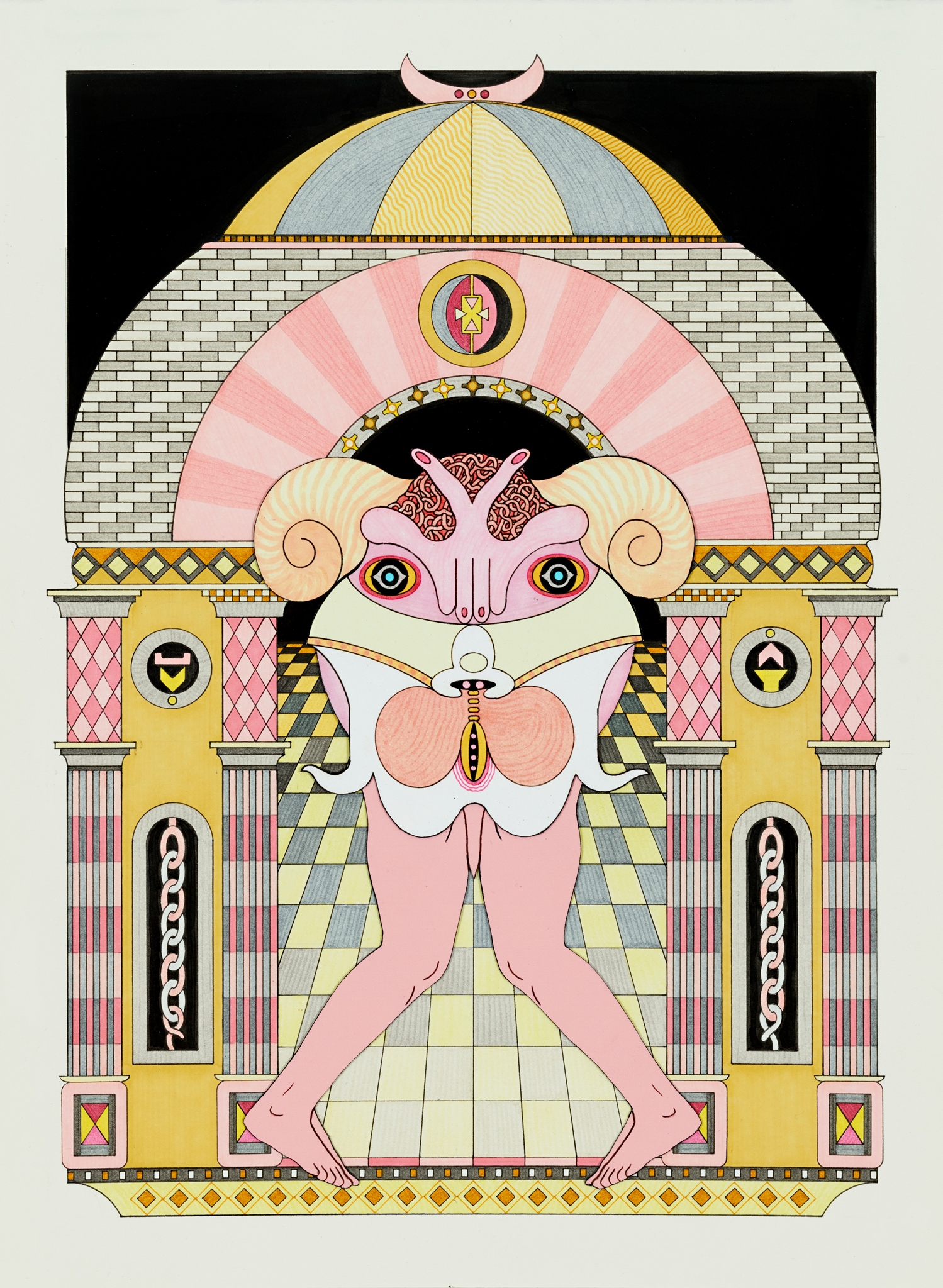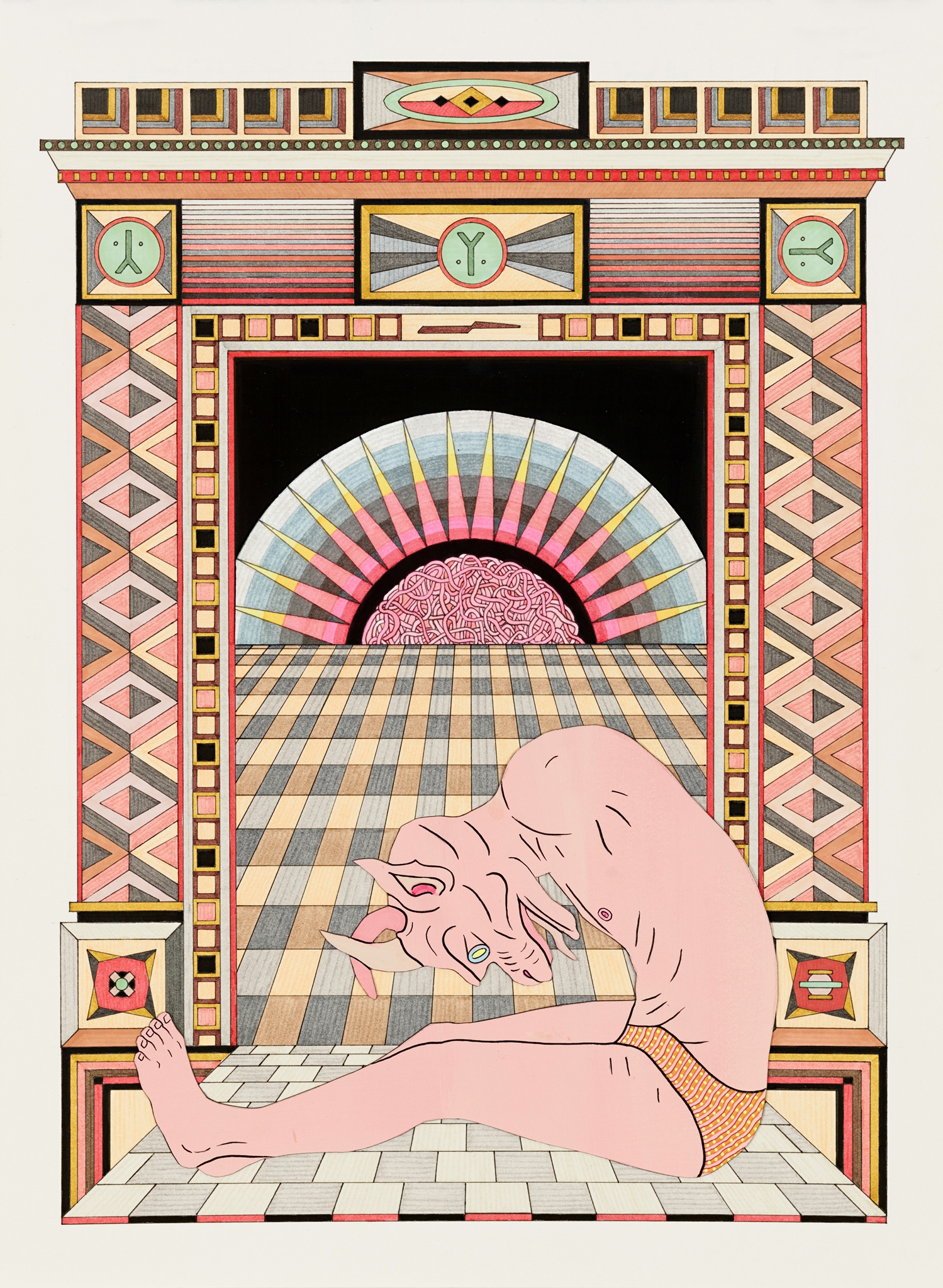 Pen, fibre tipped markers and gouache on paper