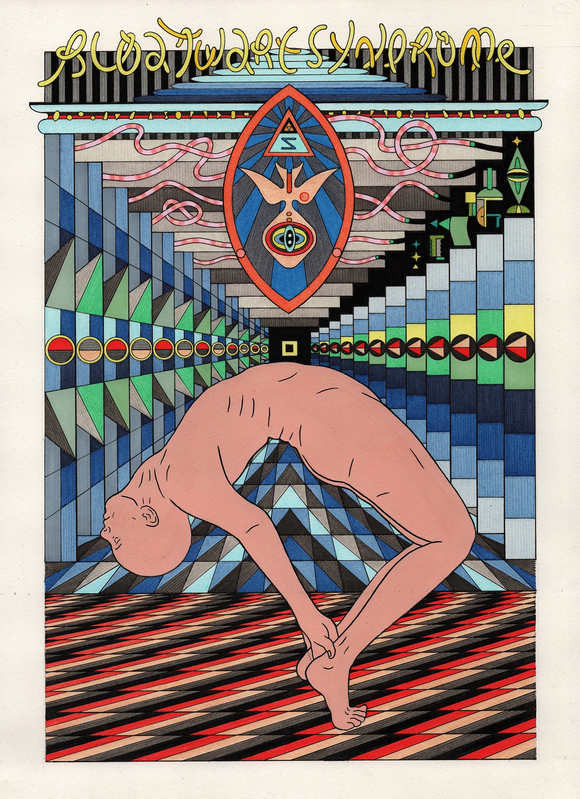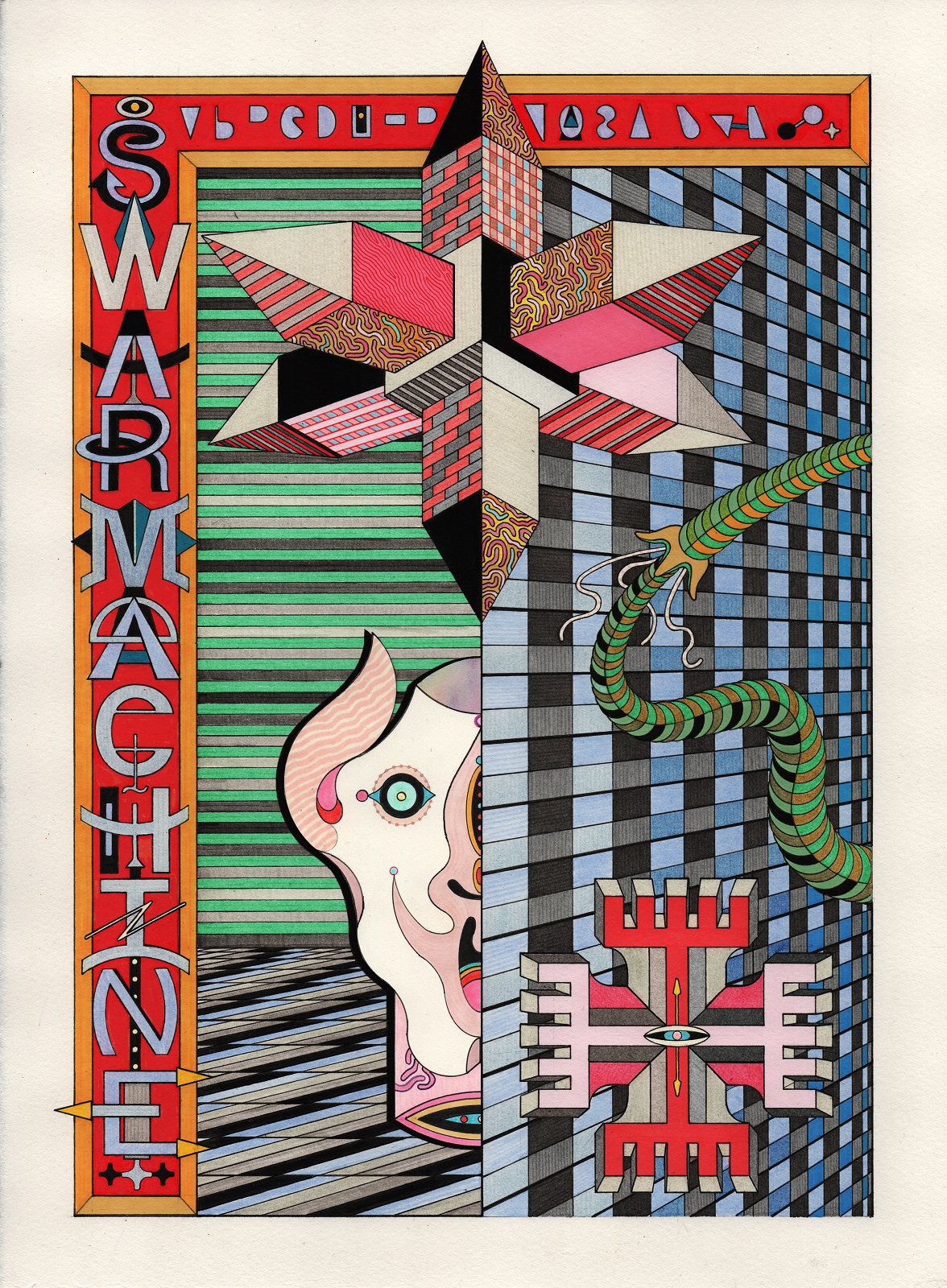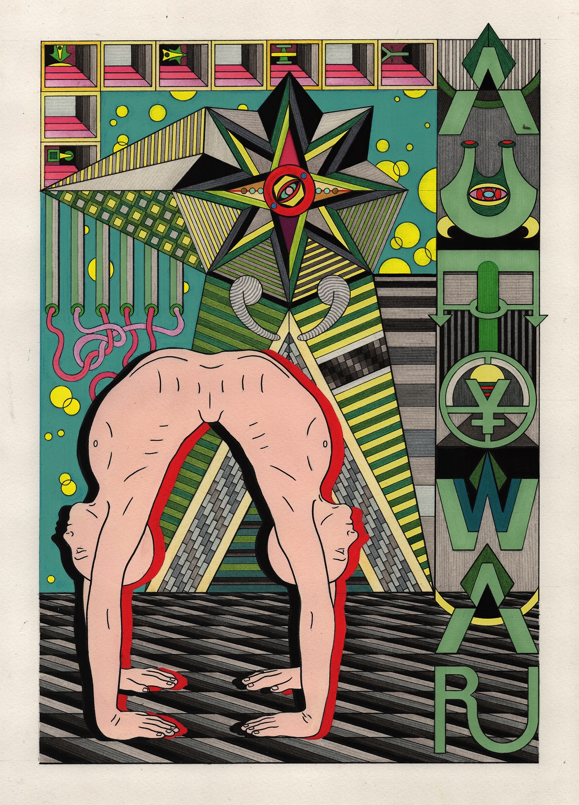 pen, fibre tipped markers and gouache on paper
