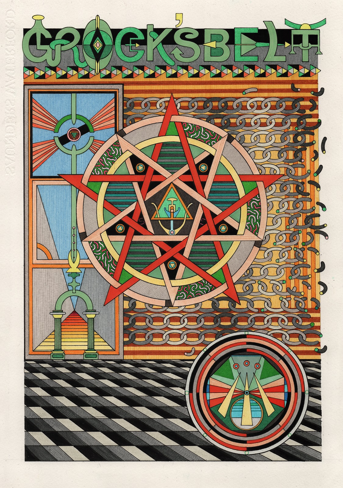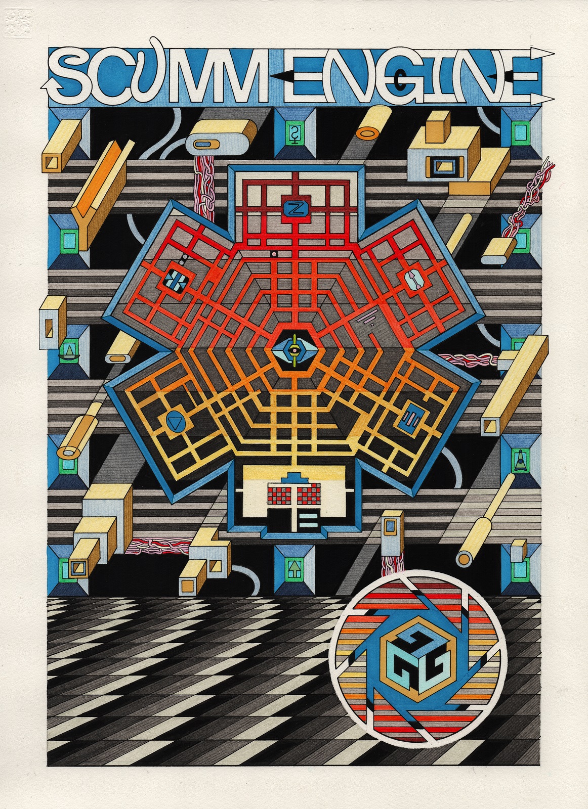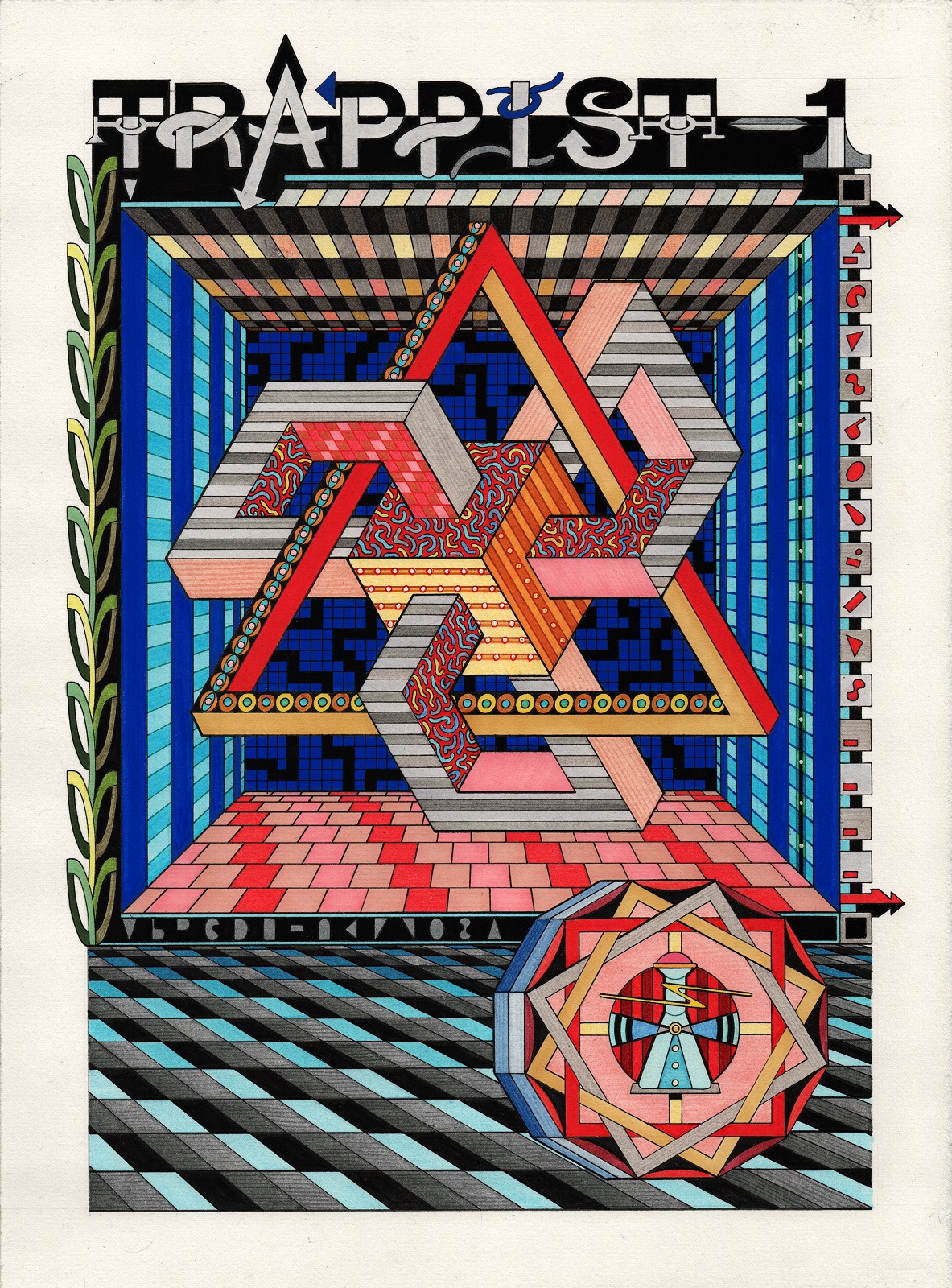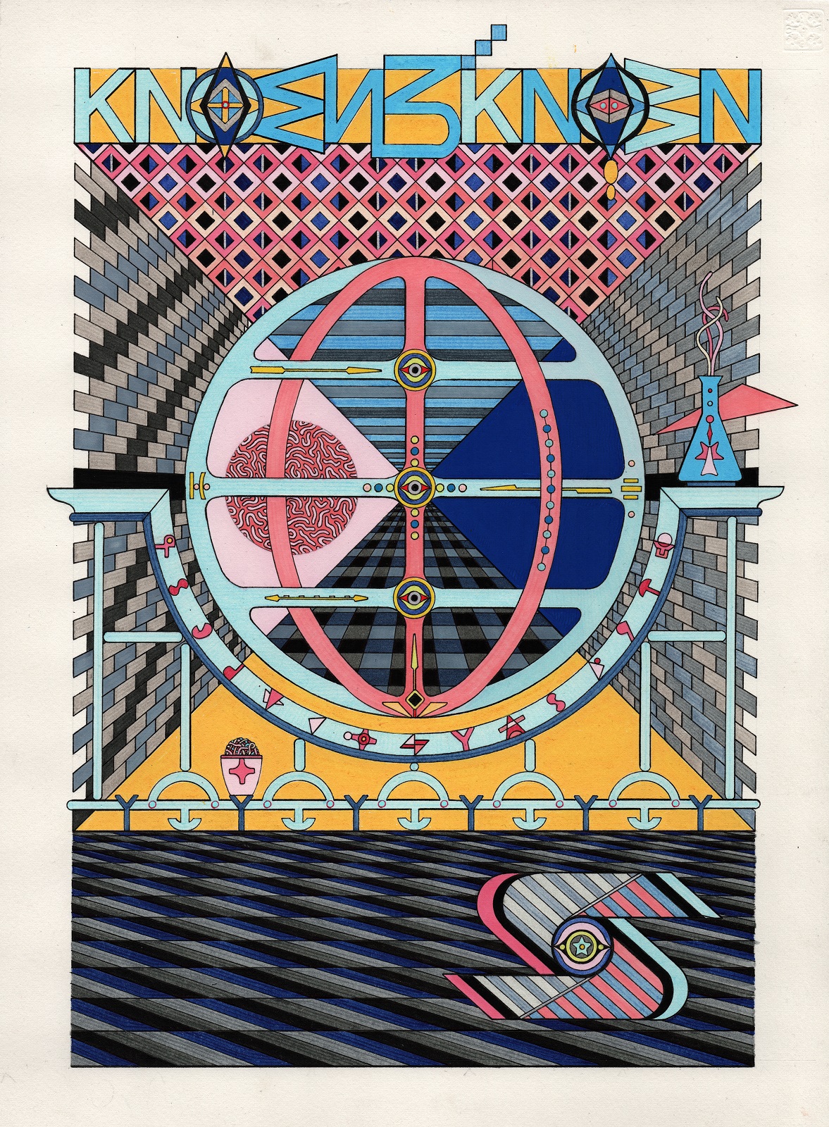 pen, fibre tipped markers and gouache on paper