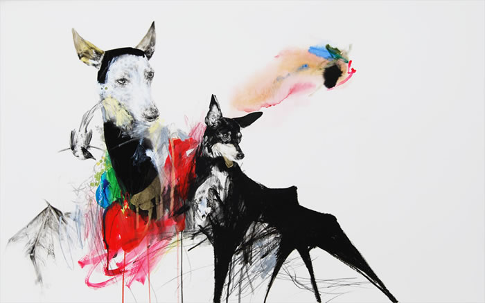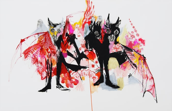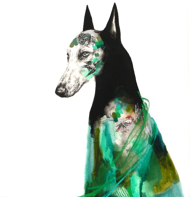 watercolor, ink and oil pastel on paper