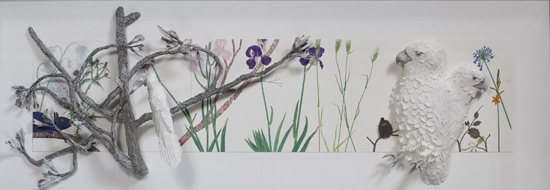 watercolour on paper & overlay; papier mache and ink (black)