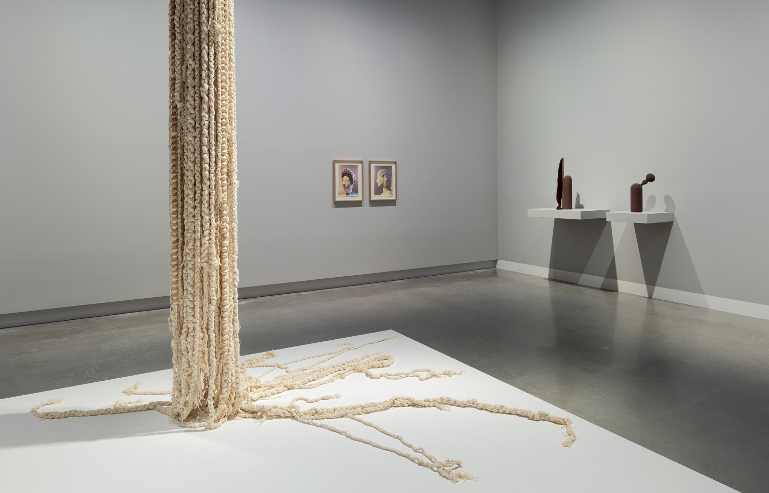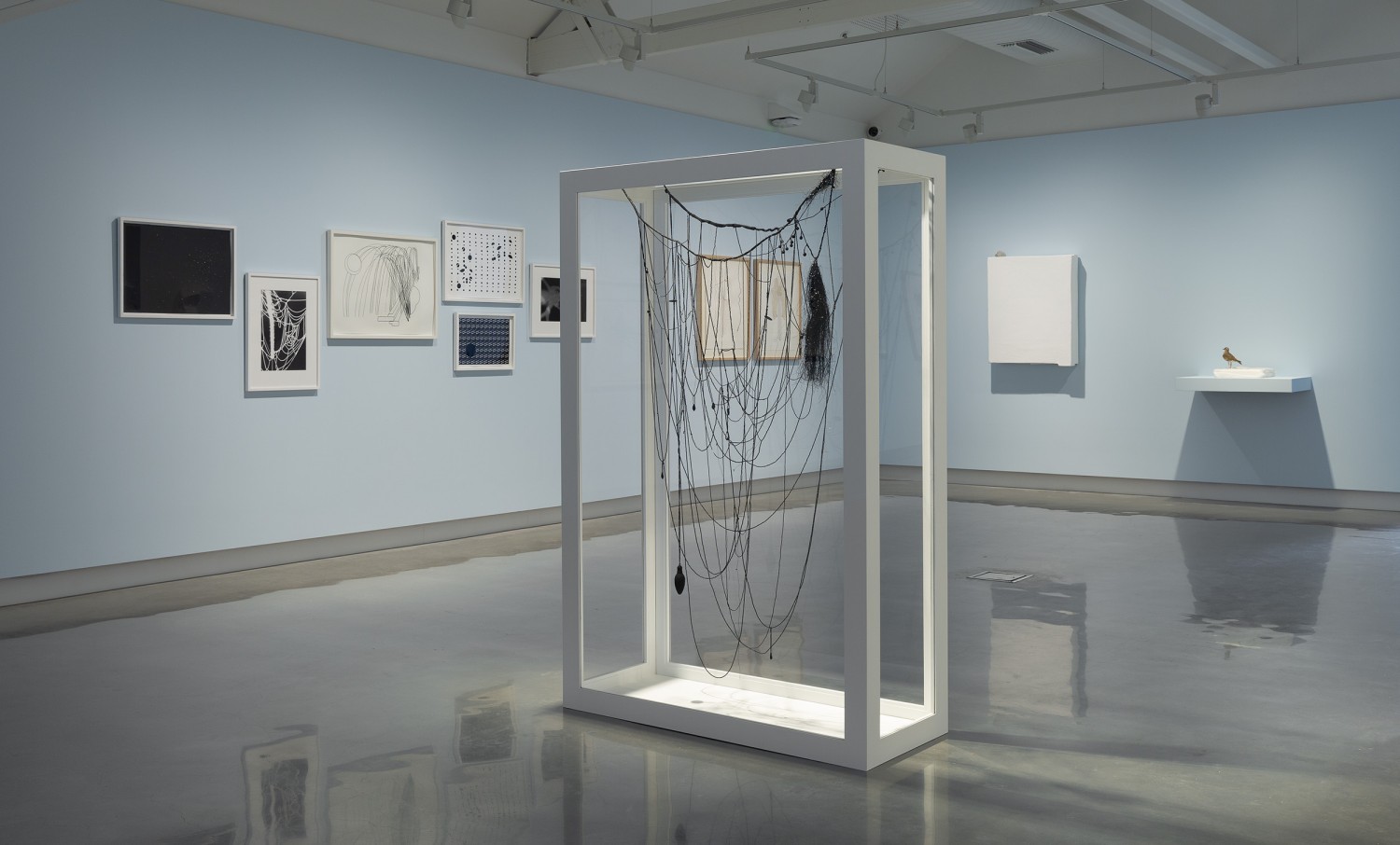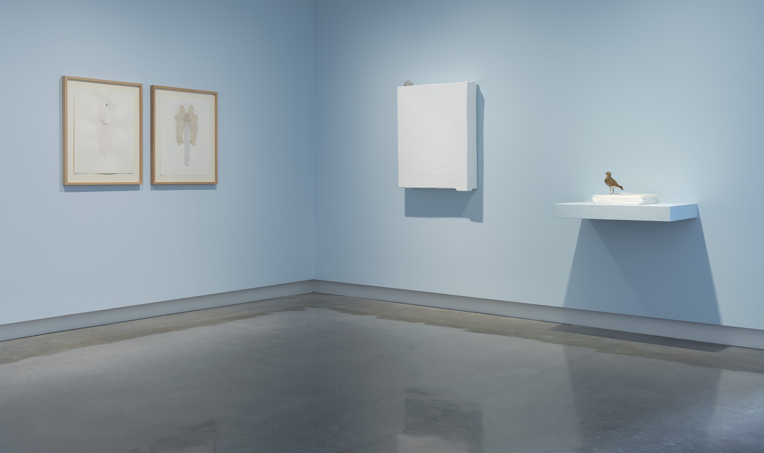 • Installation view, Between Appearances: the art of Louise Weaver, with (left to right) Nocturne (Entr'acte) 2019, Datura (moon flower) 2019, Cradling 2019