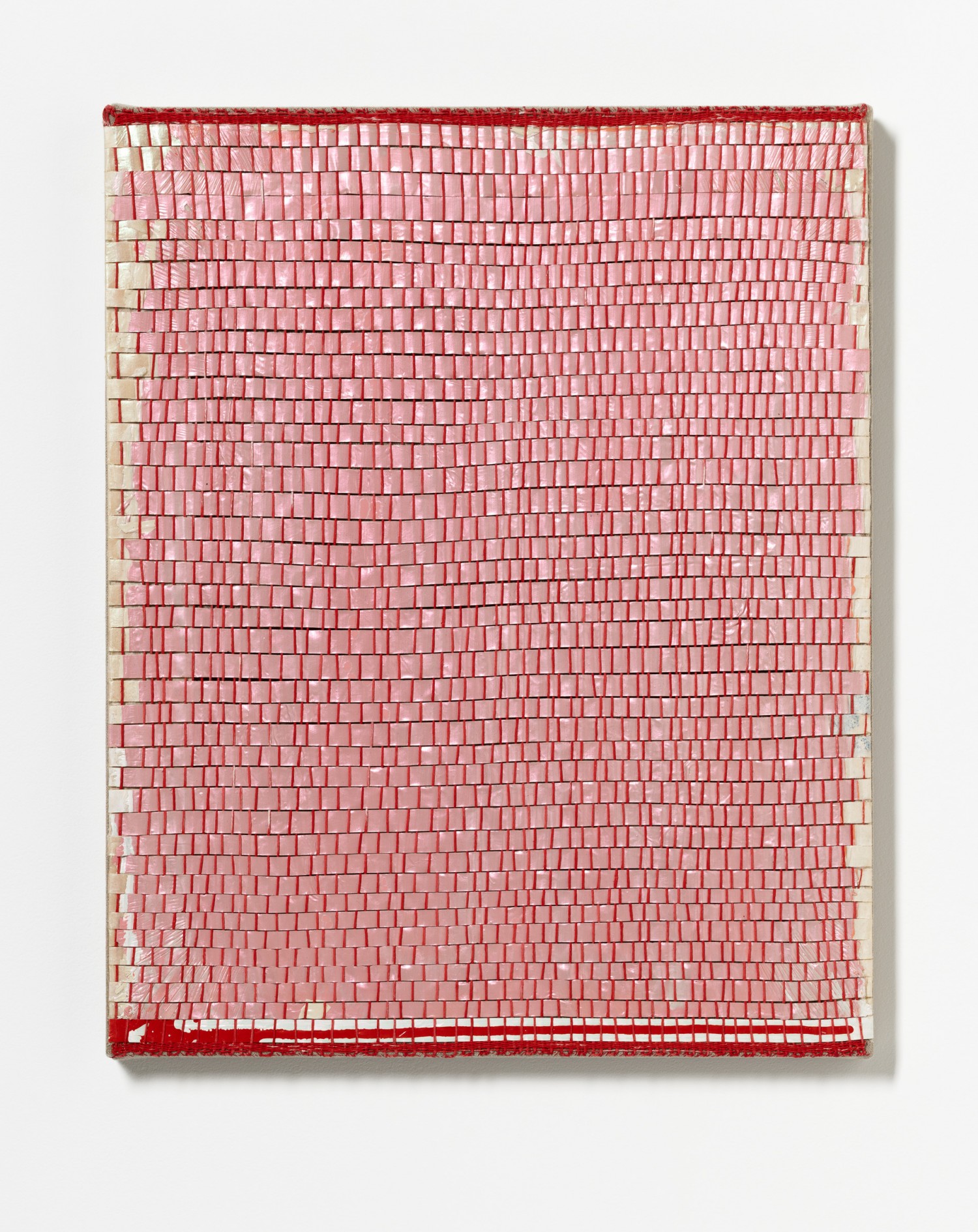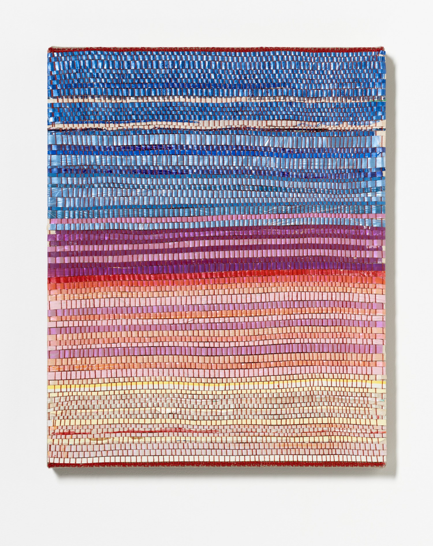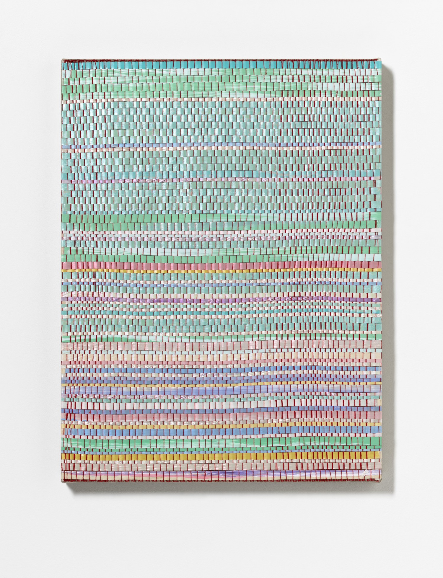 synthetic polymer emulsion, iridescent pigment, micaceous iron oxide, Japanese kozo natural paper, linen and cotton thread on wooden panel