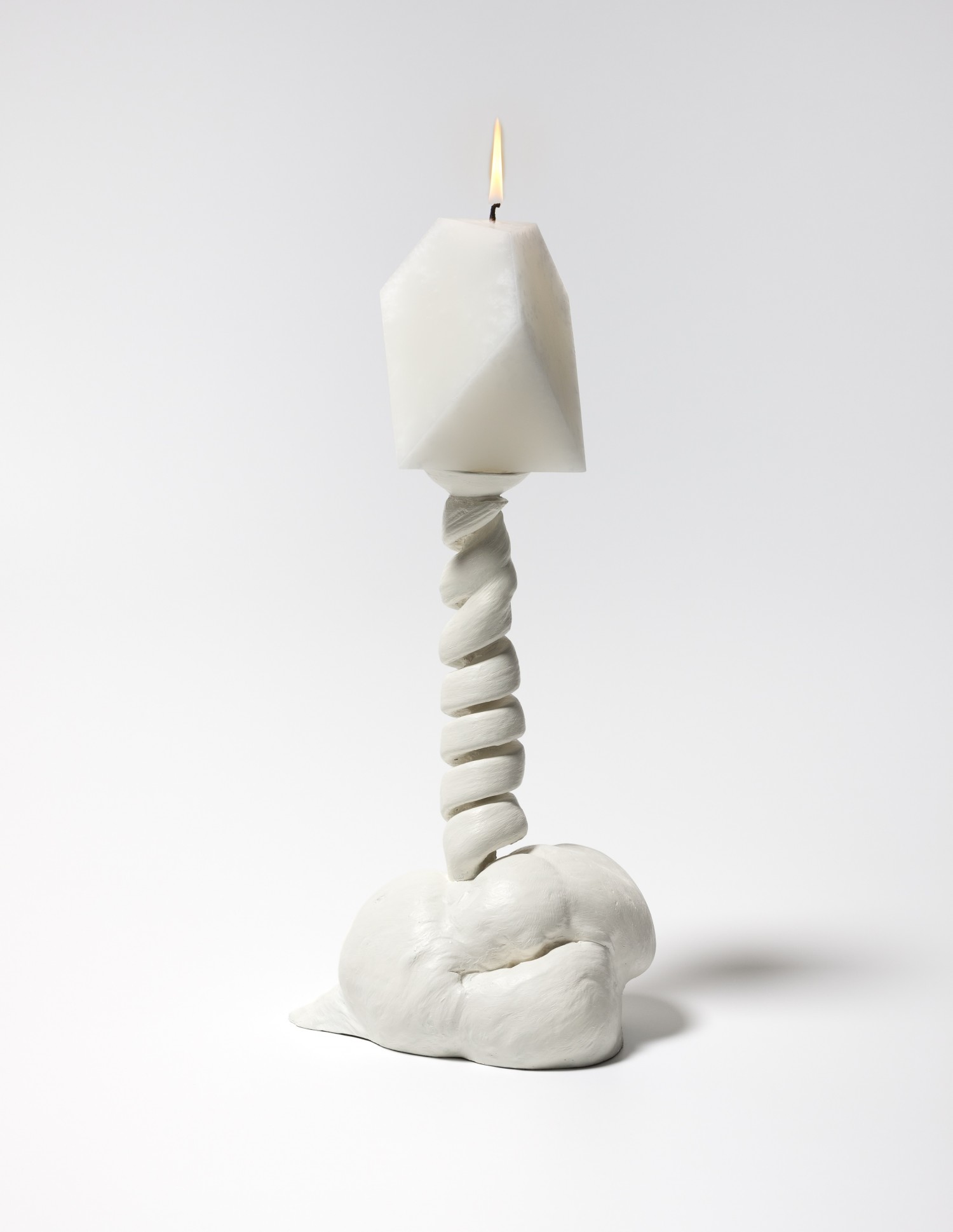 Candlestick: 33.5 x 16.5 x 15 cm Polyhedron candle (Cast on the evening of the Winter solstice) 12.5 x 10.5 x 10.5 cm approx.