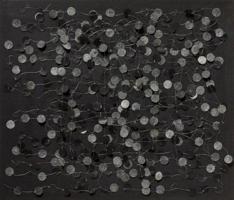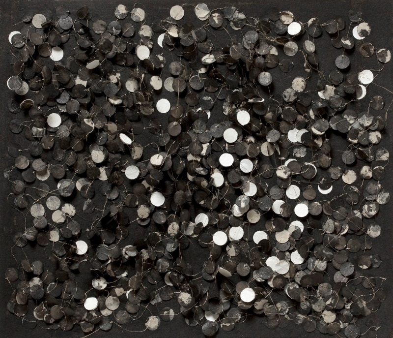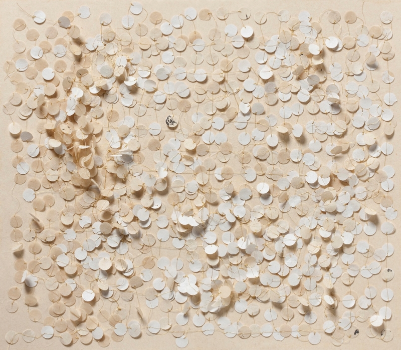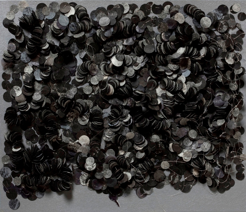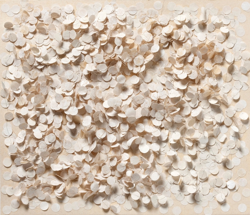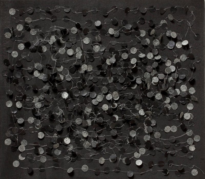 ink, synthetic polymer paint, pigment, watercolour, matchstick, metallic thread, Japanese Kozo natural paper, Fabriano Artistico 640 gsm paper