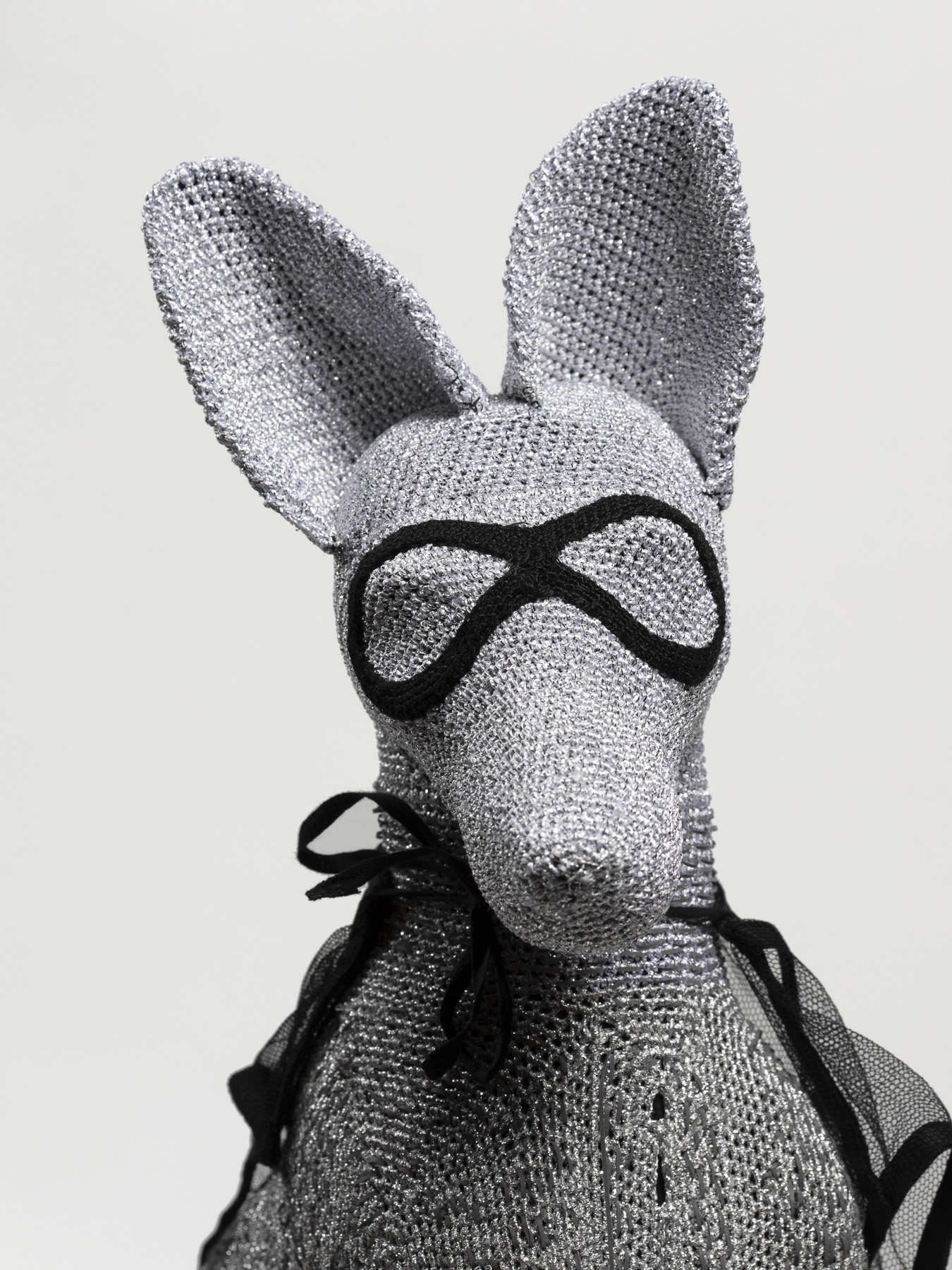 Hand crocheted Lurex, limited edition Japanese bamboo tape and plastic thread over high density foam, synthetic polymer emulsion, cotton rag paper, wire, various secret hidden talismans.