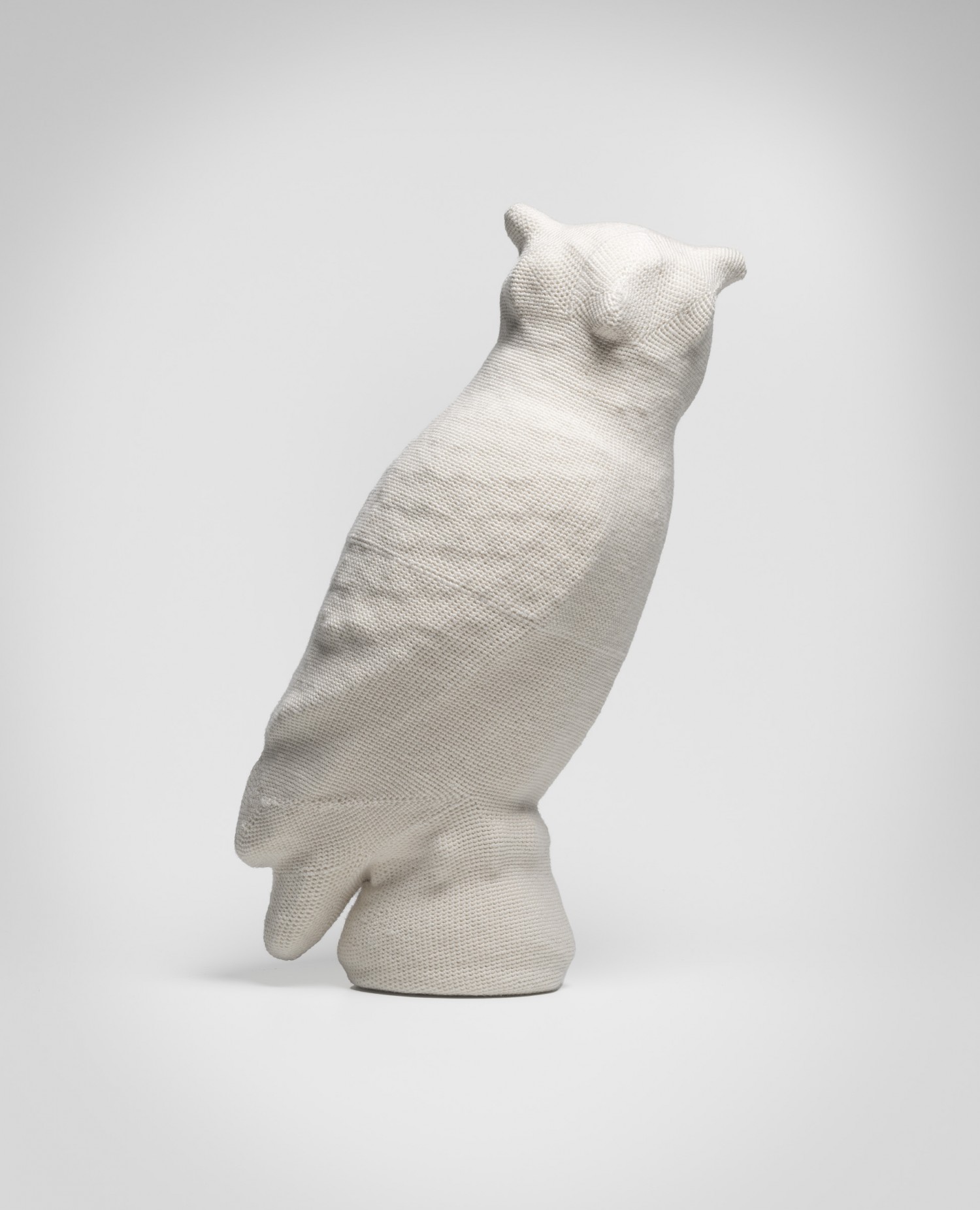 Hand crocheted lamb’s wool and polyester thread over plastic