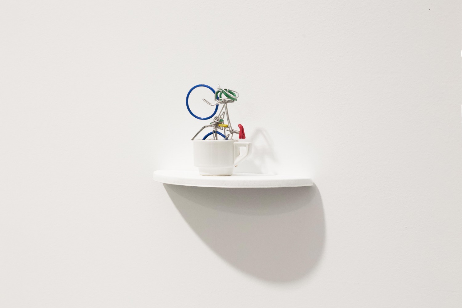 Double espresso two sugars stirred with the rear wheel of a street vendors bicycle.